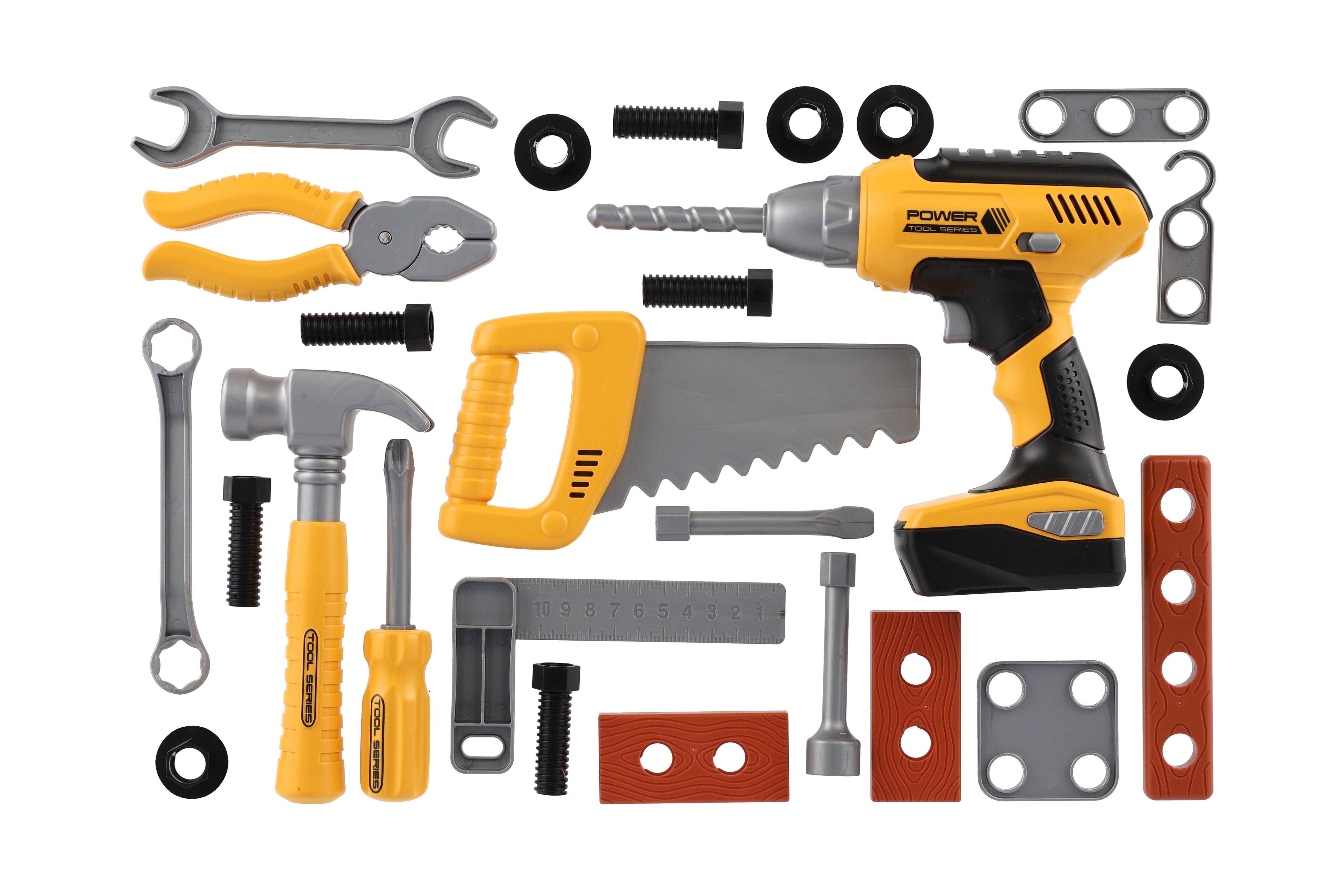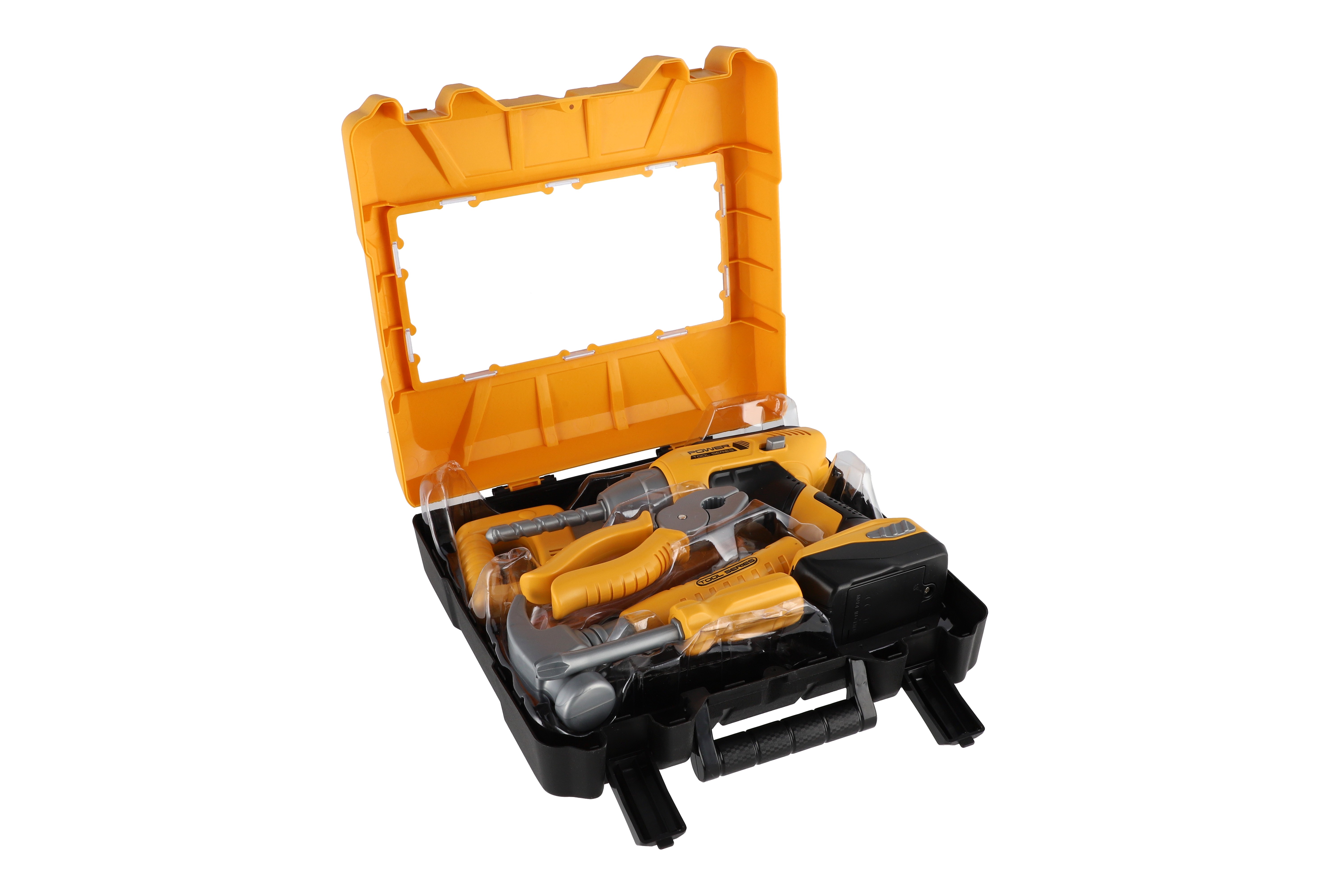 Tato dětská sada nářadí s vrtačkou je ideálním dárkem pro malé kutily, kteří rádi napodobují práci dospělých. Sada obsahuje vše potřebné pro malé opraváře v praktickém plastovém kufříku. Hračka je vybavena zvukovými efekty a napájena packem na baterie (3xAAA, nejsou součástí balení), kompatibilní s dalšími nástroji stejné značky. Velikost vrtačky: 16 x 17 cm Rozměr balení: 26 x 25 x 9 cm Vhodné pro děti od 3 let