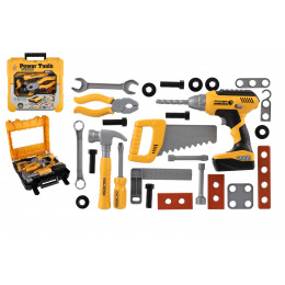Sada nářadí plast s aku vrtačkou 16x17cm na baterie se zvukem v plastovém boxu 26x25x9cm