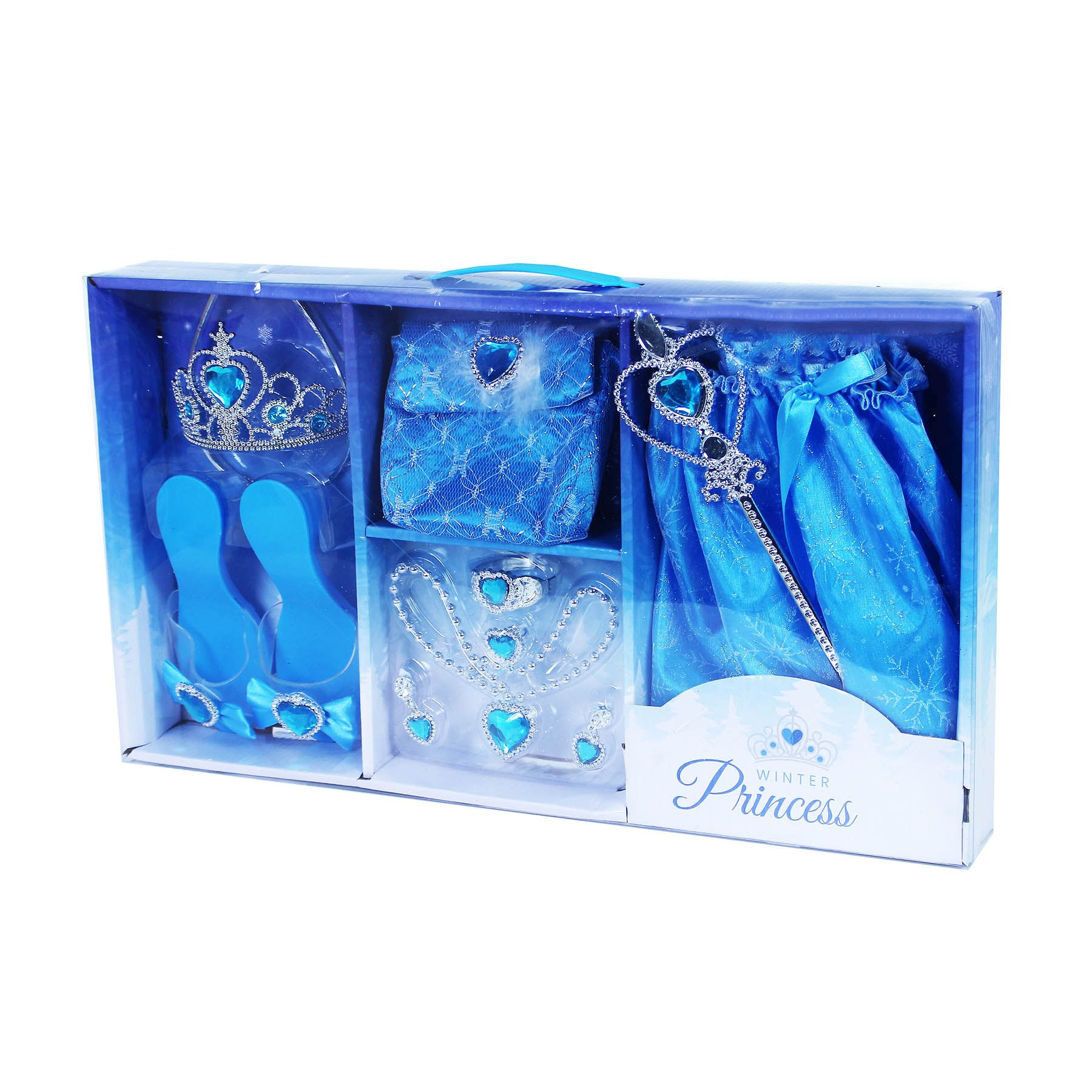 Sada v modrém provedení pro každou malou princeznu. Součástí balení je vše, co správná princezna potřebuje. Jsou to střevíčky, korunka, kabelka a další doplňky.