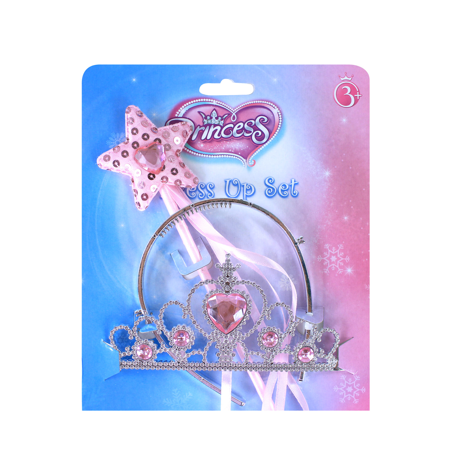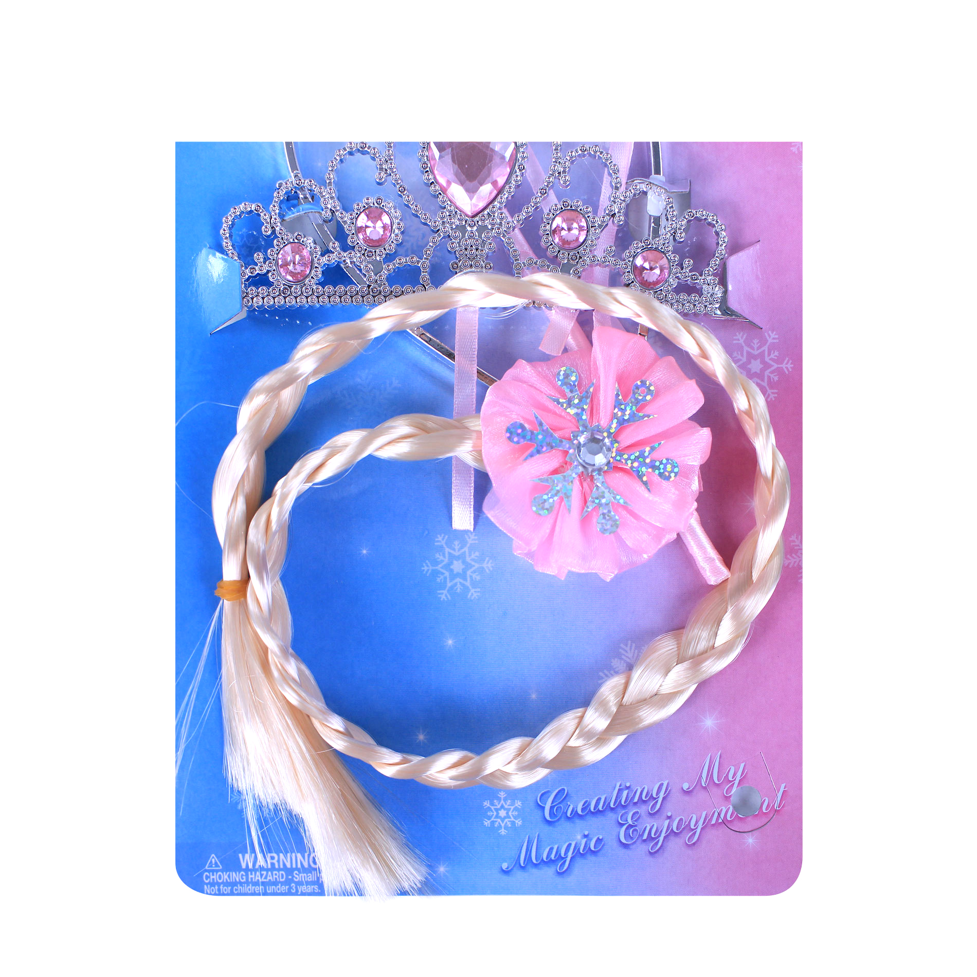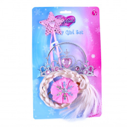 Překrásný set korunky, hůlky a copu pro malé princezny! Korunka je dekorována ozdobnými kamínky v růžové barvě. Délka copu je cca 62 cm