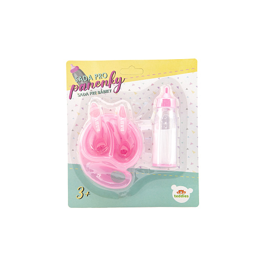 Teddies Sada pro panenky plast lahvička, miska s příborem na kartě 19x22x4cm