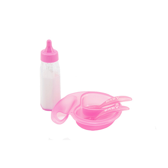 Má Tvá panenka hlad? Dej jí napít z lahvičky s mlékem nebo připrav jídlo do mističky. Sada obsahuje lahev s mlékem, mističku se lžičkou a vidličkou. Rozměr balení: 19 x 22 x 4 cm Vhodné pro děti od 3 let