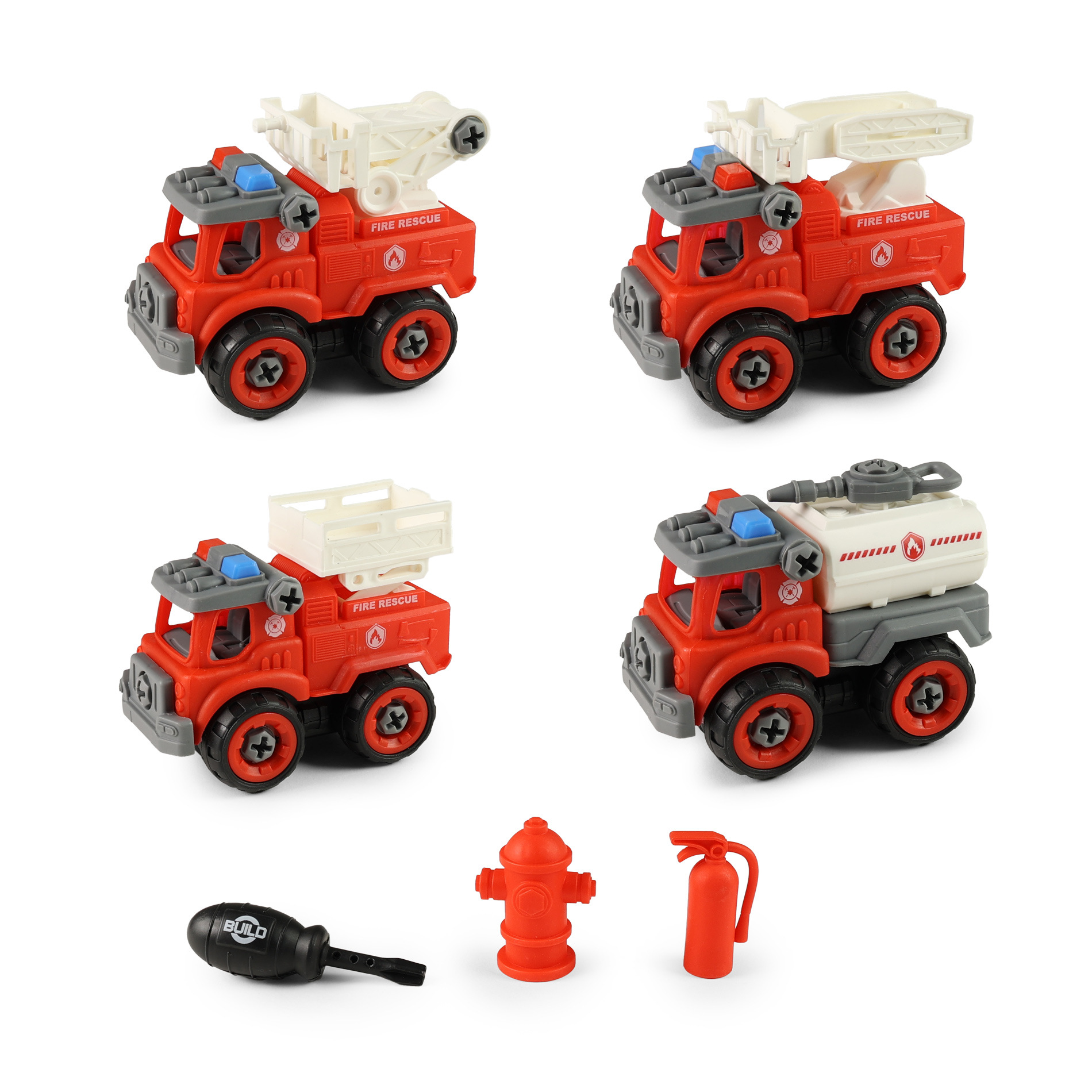 Malí hasiči a nadšení montéři si přijdou na své! Tato sada šroubovacích hasičských aut nabízí nejen spoustu zábavy, ale i možnost rozvíjet jemnou motoriku a technické dovednosti. Každé z autíček má délku přibližně 11 cm a je možné jej snadno rozebrat a znovu složit pomocí přiloženého šroubováku.