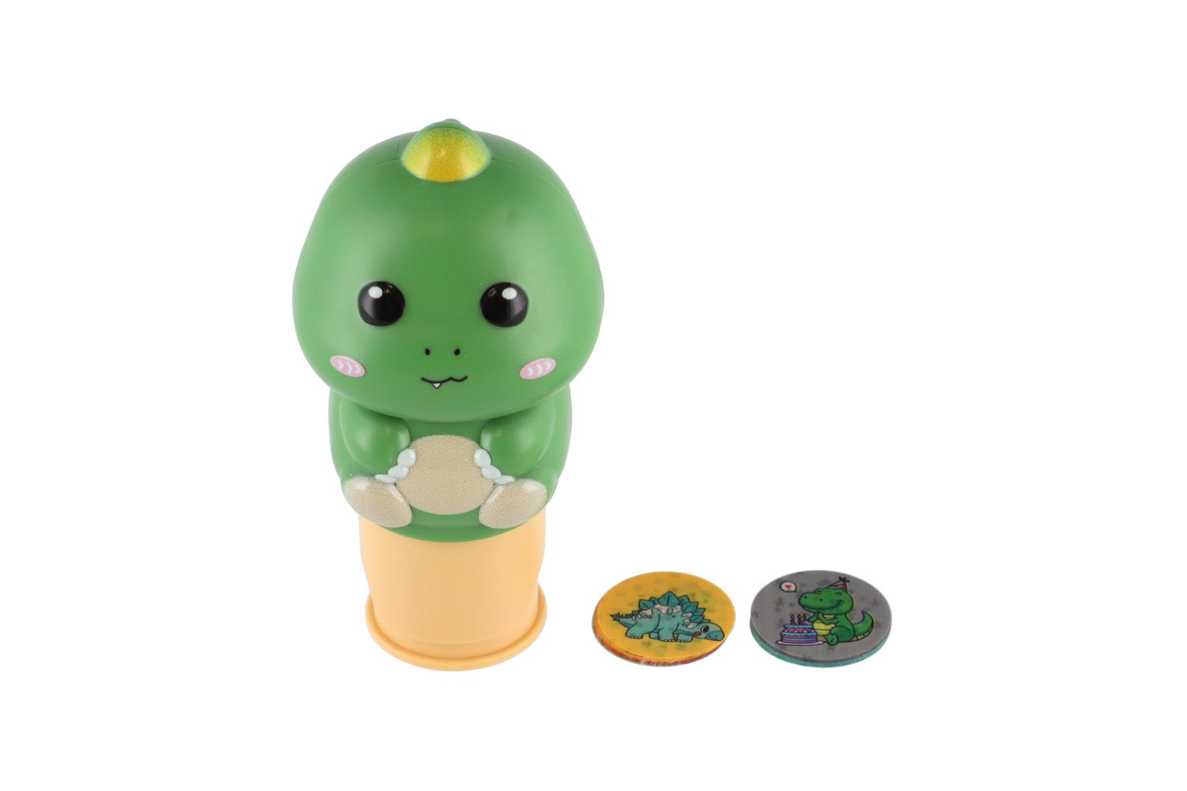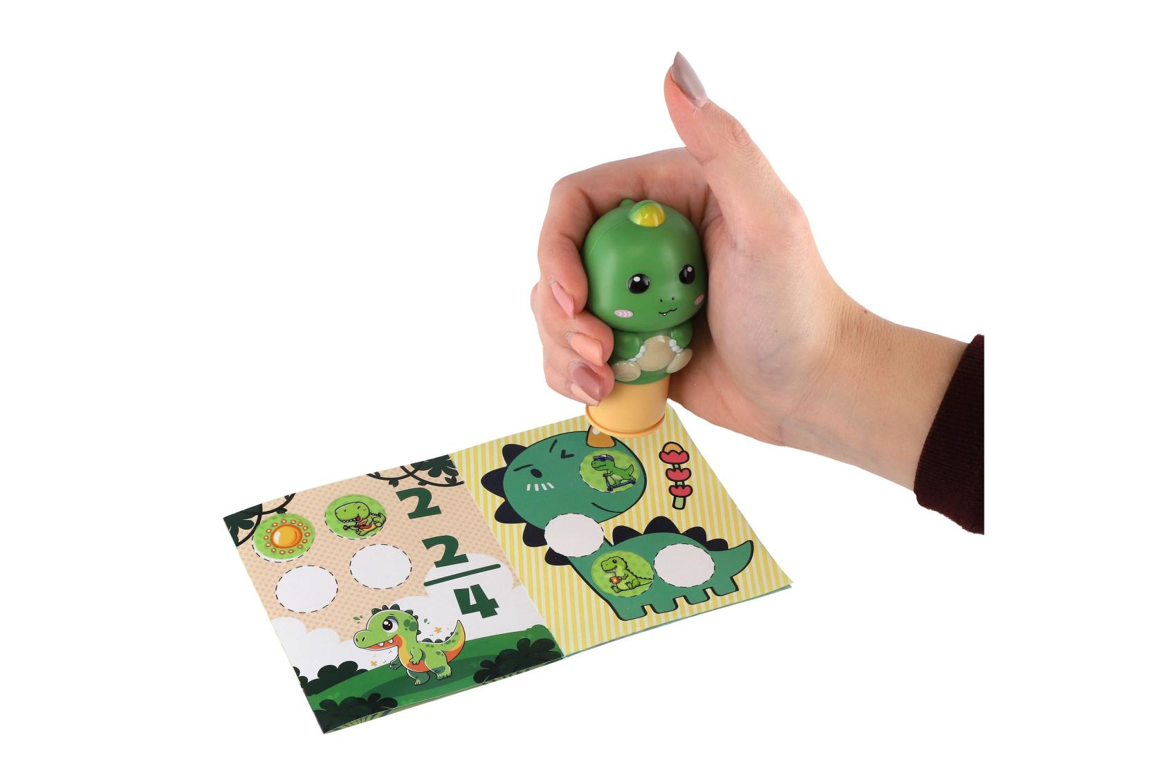 Roztomilé razítko ve tvaru dinosaura je skvělou kreativní hračkou pro všechny malé milovníky pravěkých tvorů. Součástí balení jsou také samolepková kolečka s různými dinosaury a tematický arch, na který si mohou děti samolepky nalepovat.