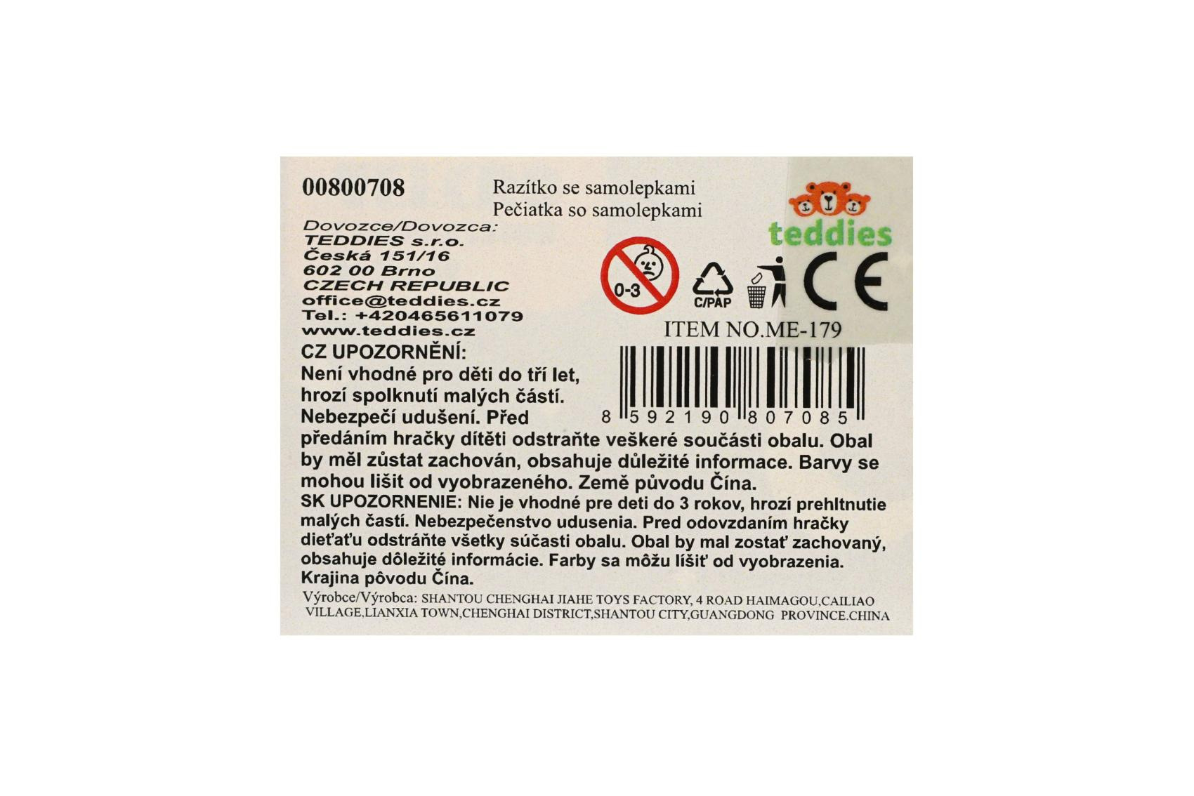 Teddies Samolepkové razítko/Razítko se samolepkami jednorožec plast s nálněmi v krabičce 10x12cm