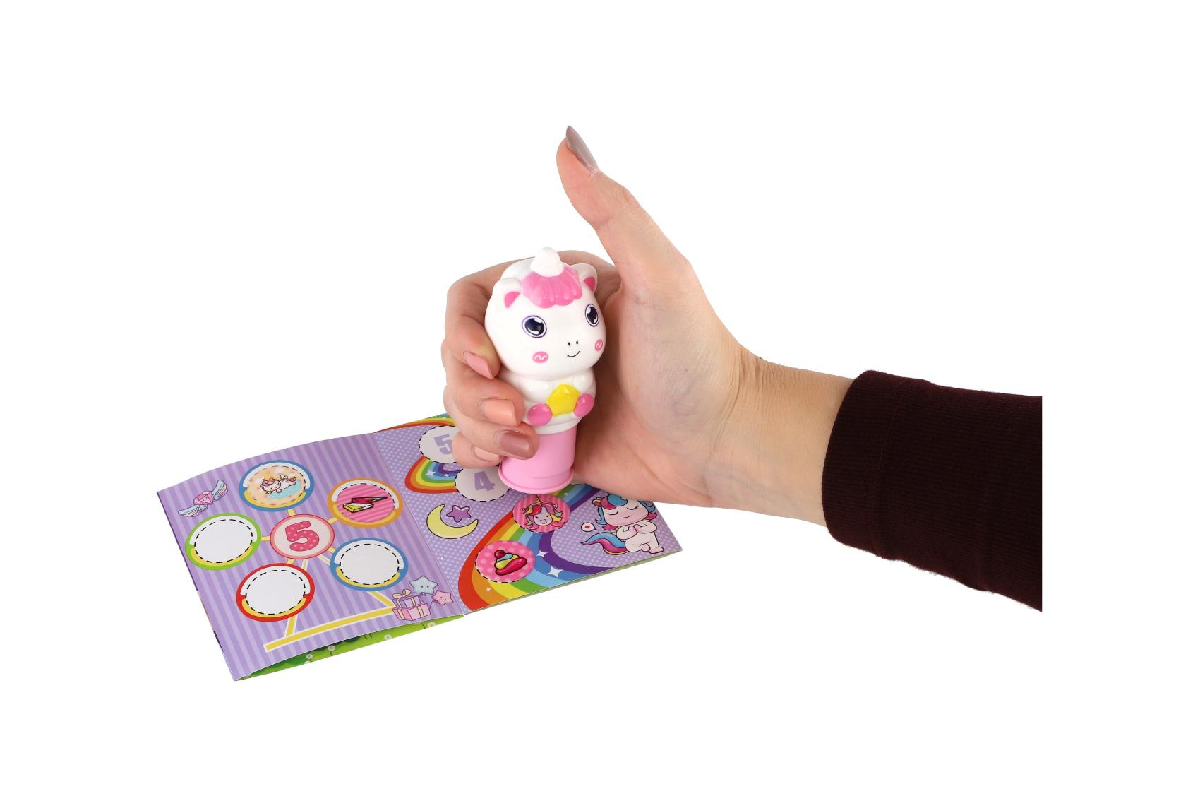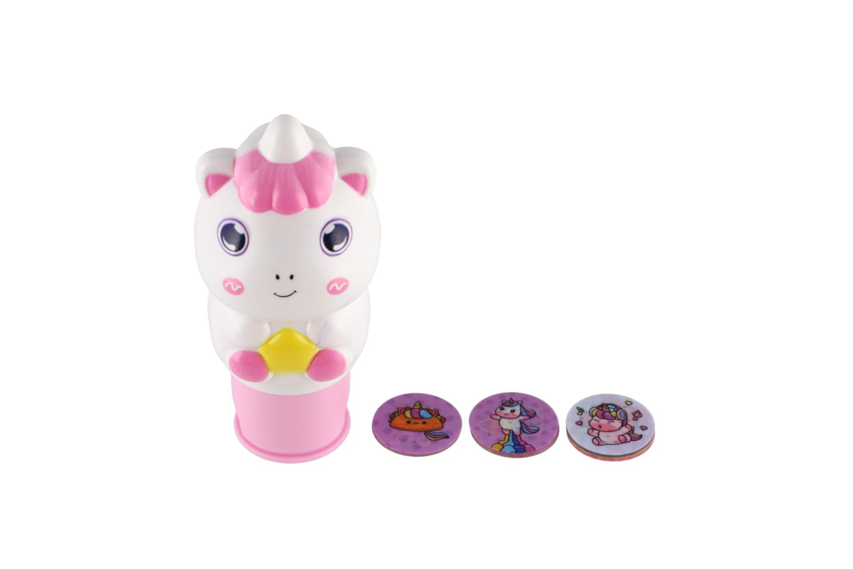Rozkošné razítko ve tvaru jednorožce potěší každé dítě, které miluje tvoření. Hračka kombinuje zábavné razítkování a samolepky s kouzelnými motivy jednorožců, takže ideální pro kreativní tvoření doma, ve škole či školce.