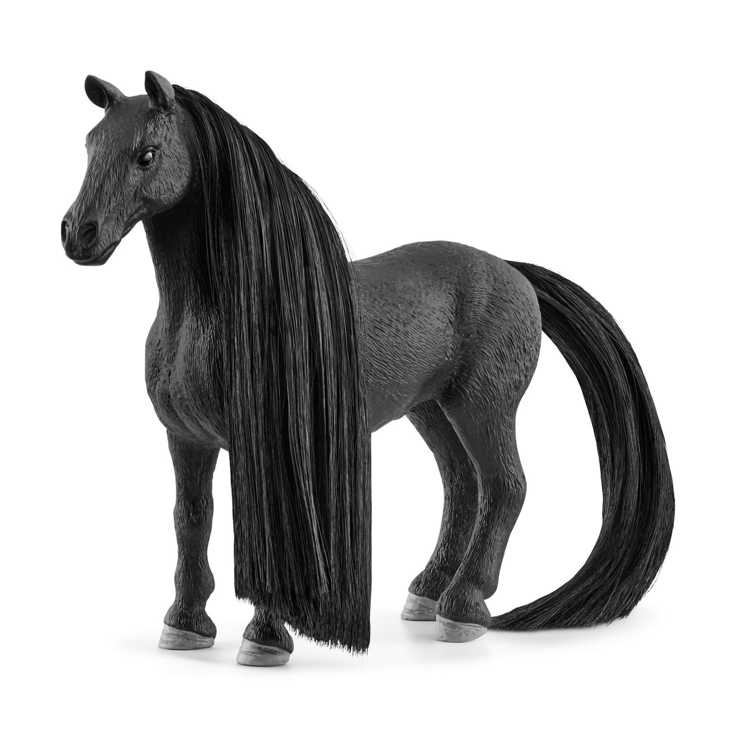Když se černý arabský hřebec postaví vedle sněhově bílé arabské klisny (prodává se samostatně), tvoří spolu úžasný pár. Krásný plnokrevník však vyniká i sám o sobě. Se svýma dlouhýma, ladnýma nohama a štíhlým krkem vypadá jednoduše úchvatně. Je ale taky opravdu sportovně založený a nic nemiluje víc než pořádné koňské dostihy. Jeho temperament se k němu dokonale hodí: Je temperamentní a společenský, ale taky docela citlivý. Rozměry figurky: 10 x 15 x 4,5 cm. Věk: 5+