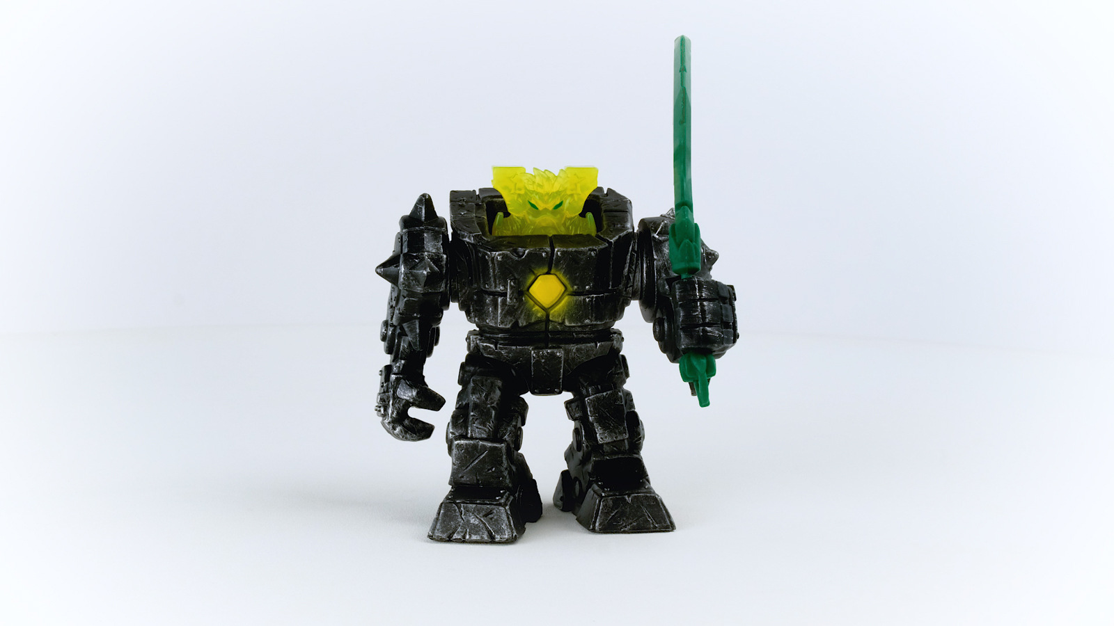 Bez ohledu na to, jak tvrdí jsou odpůrci kamenného Robota Eldrador Mini Creatures od Schleich® Eldrador®, on je tvrdší! Obr byl stvořen Mini tvory, aby po několika zničujících bitvách znovu vybudoval Kamenný svět. Pohyblivými pažemi a mocným kamenným kladivem roztříští balvany, které leží kolem, odhází suť z cesty a vytesá chladné jeskyně. Mini tvorové jdou do společného boje a Kamenný Robot jde s nimi! Robot je ovládán pánem kamenů, vůdcem Mini tvorů v Kamenném světě. Malý, divoký tvor je stvořen ze super tvrdých krystalů. Jakmile se usadí do Kamenného Robota, stačí jedna rána jeho kladivem a promění bublající lávový svět v kamennou krajinu bez života, ledový svět je rozbit do drobných střepin a svět džungle je jednoduše pošlapaný! Sada obsahuje: 1x robot, 1x zbraň, 1x mini figurka. Figurky Schleich jsou mimořádně detailní, láskyplně malované a umožňují dětem hrát si a zároveň se učit. Nevhodné pro děti do 3 let. Rozměr balení: 13 x 19 x 10,5 cm. Doporučený věk: 7-12.