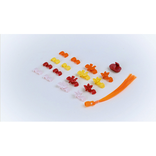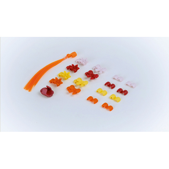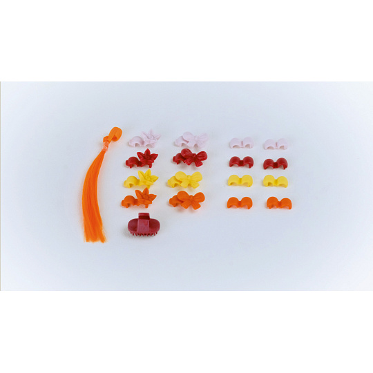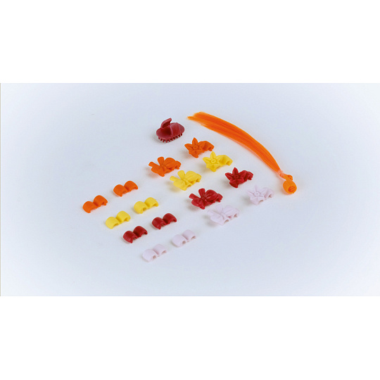 S těmihle skvělými sponkami je péče o koně mnohem zábavnější! Malý kartáč na prst dodá lesk každé hřívě a ocasu! Těžko se rozhodnout, jaké doplňky koni do účesu vybrat… Korálky, květiny i mašle vypadají skvěle. Měly by být spíš barevné, nebo trochu decentnější? Je tu dokonce i oranžový pramen do hřívy navíc, který je zvláště šik. Tenhle kůň vypadá tak nádherně, že je nutné s ním vyjet na projížďku, aby se ukázal! Rozměry: 12,5x16x1,5cm. Vhodné pro děti od 3 let.