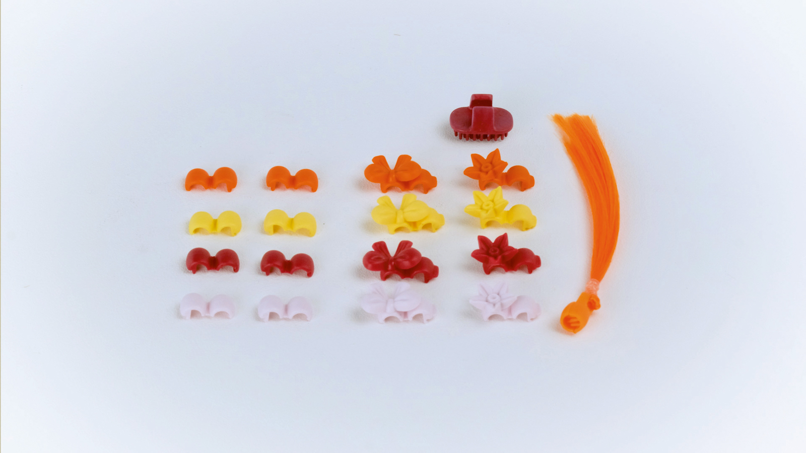 S těmihle skvělými sponkami je péče o koně mnohem zábavnější! Malý kartáč na prst dodá lesk každé hřívě a ocasu! Těžko se rozhodnout, jaké doplňky koni do účesu vybrat… Korálky, květiny i mašle vypadají skvěle. Měly by být spíš barevné, nebo trochu decentnější? Je tu dokonce i oranžový pramen do hřívy navíc, který je zvláště šik. Tenhle kůň vypadá tak nádherně, že je nutné s ním vyjet na projížďku, aby se ukázal! Rozměry: 12,5x16x1,5cm. Vhodné pro děti od 3 let.