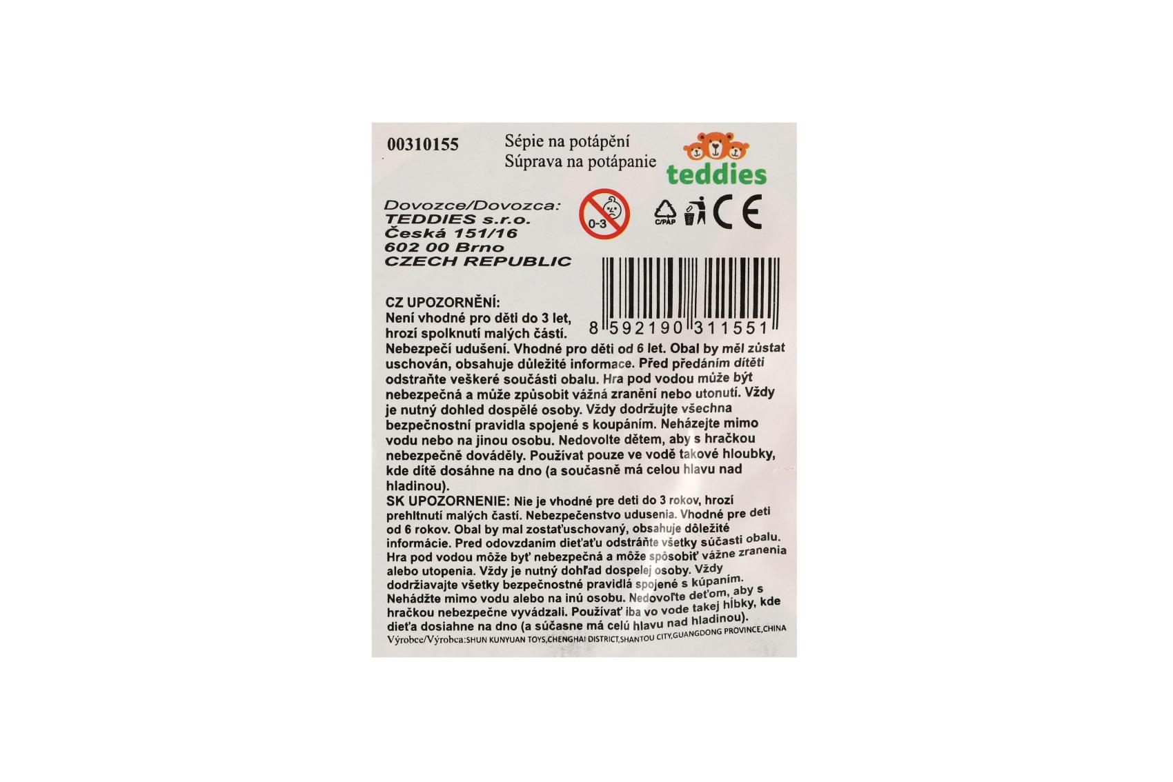 Zpestřete koupání touto zábavnou sépií na natažení. Plastová hračka o délce 15 cm je ideální do vany, bazénu nebo dětského brouzdaliště. Po natažení se sépie samostatně pohybuje ve vodě a imituje plavání – skvělá zábava i trénink jemné motoriky. Rozměry balení 11 x 20 x 8 cm Vhodné pro děti od 6 let