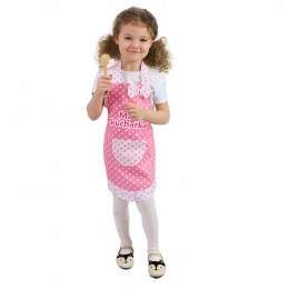 Roztomilá dětská kuchařská zástěra v růžovém provedení s bílými puntíky. Tuto vychytávku ocení každá malá hospodyňka při pomoci v kuchyni. Obsahuje také rukavici.