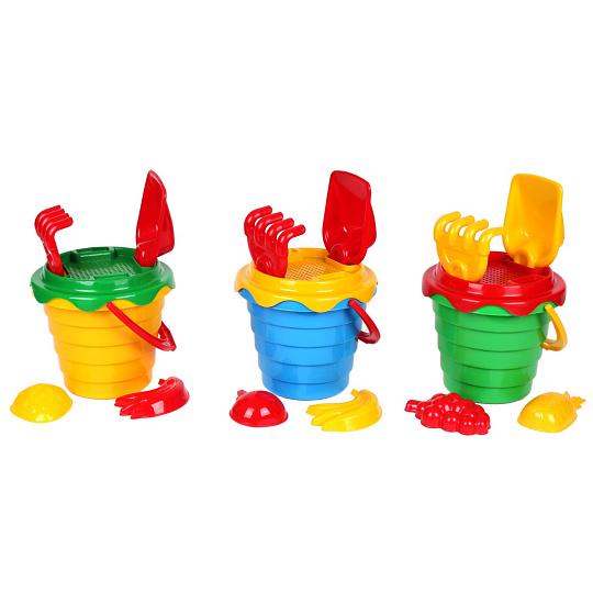 Pestrobarevná sada na písek nesmí chybět na žádném pískovišti a letní dovolené! Sada obsahuje kyblík 13 cm, lopatku, hrábě, sítko a 2 formičky. Barvy se mohou lišit od vyobrazení. Nelze vybrat konkrétní druh.