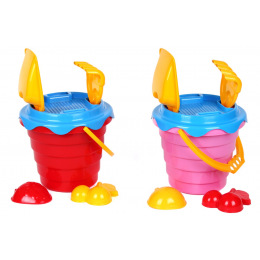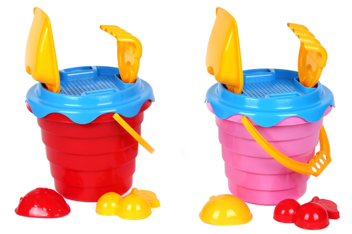 Pestrobarevná sada na písek nesmí chybět na žádném pískovišti a letní dovolené! Sada obsahuje kyblík 13 cm, lopatku, hrábě, sítko a 2 formičky. Barvy se mohou lišit od vyobrazení. Nelze vybrat konkrétní druh.