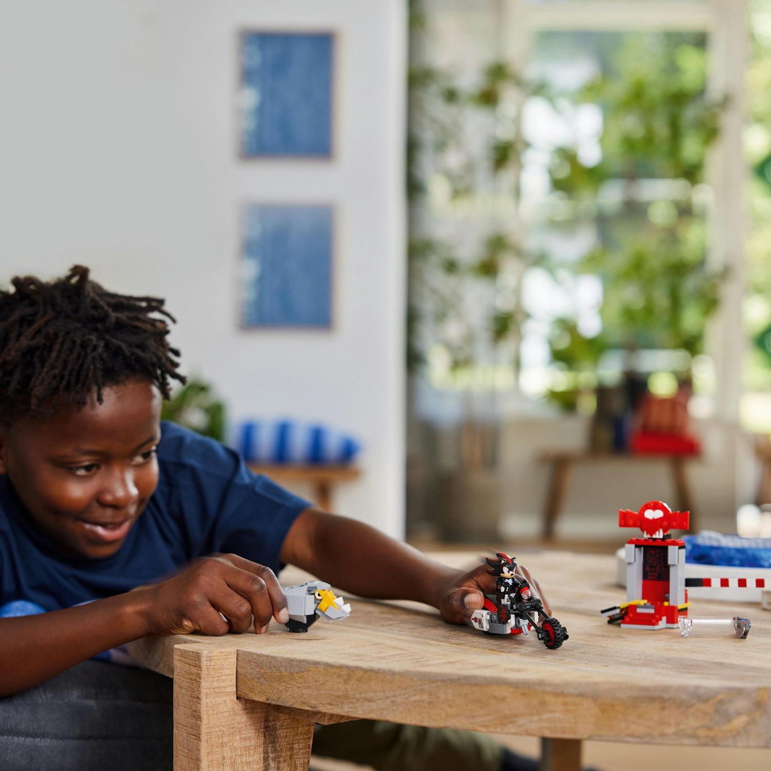 Se zábavnou stavebnicí Shadow the Hedgehog a jeho útěk (76995) z řady LEGO® Sonic the Hedgehog™ si děti od 8 let užijí hodiny akčního hraní. Stejně jako postavy z oblíbené videohry se i děti mohou těšit na úžasná dobrodružství. Vychutnají si stavění modelu i Shadowův úprk ze stázové komory v laboratoři. Hrdina usedne na motorku, projede kolem padající barikády, zničí Badnika RhinoBota – a tak pustí na svobodu Cluckyho – a dá se na útěk. Stavebnice je nabitá herními možnostmi, které podněcují kvyprávění příběhů. Děti mohou vymyslet nespočet způsobů, jakými Shadow přemůže RhinoBota, než se na své motorce vydá na útěk. V řadě LEGO Sonic the Hedgehog™ se snoubí rychlé akční hraní s kreativním stavěním. Děti a fandové Modré šmouhy si vychutnají tvorbu inspirativních scén se 3 oblíbenými akčními figurkami ze slavné hry. Děti se mohou těšit na nenáročné a intuitivní stavitelské dobrodružství s aplikací LEGO Builder. V ní si lze přibližovat a otáčet modely ve 3D, ukládat stavebnice a sledovat postup.