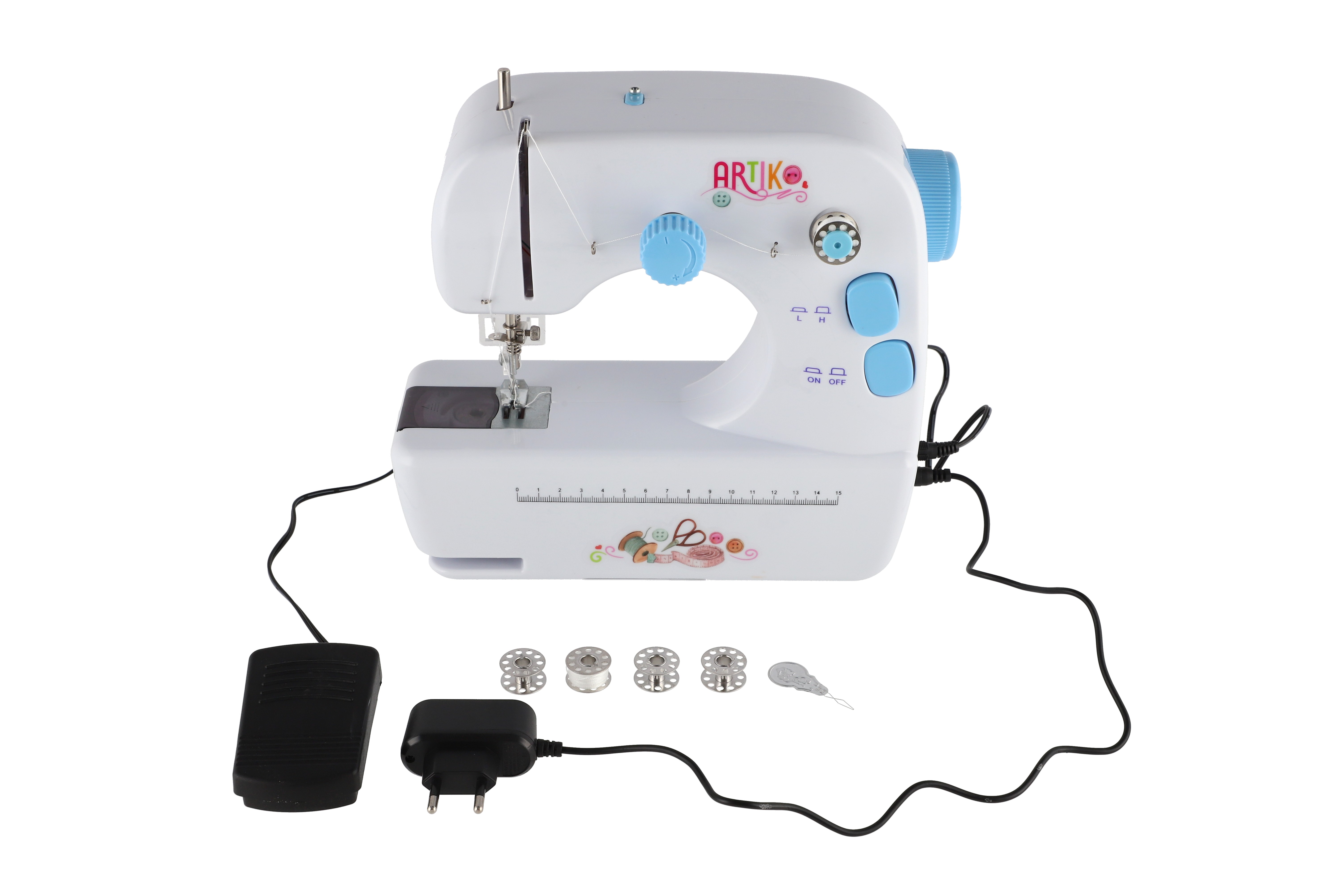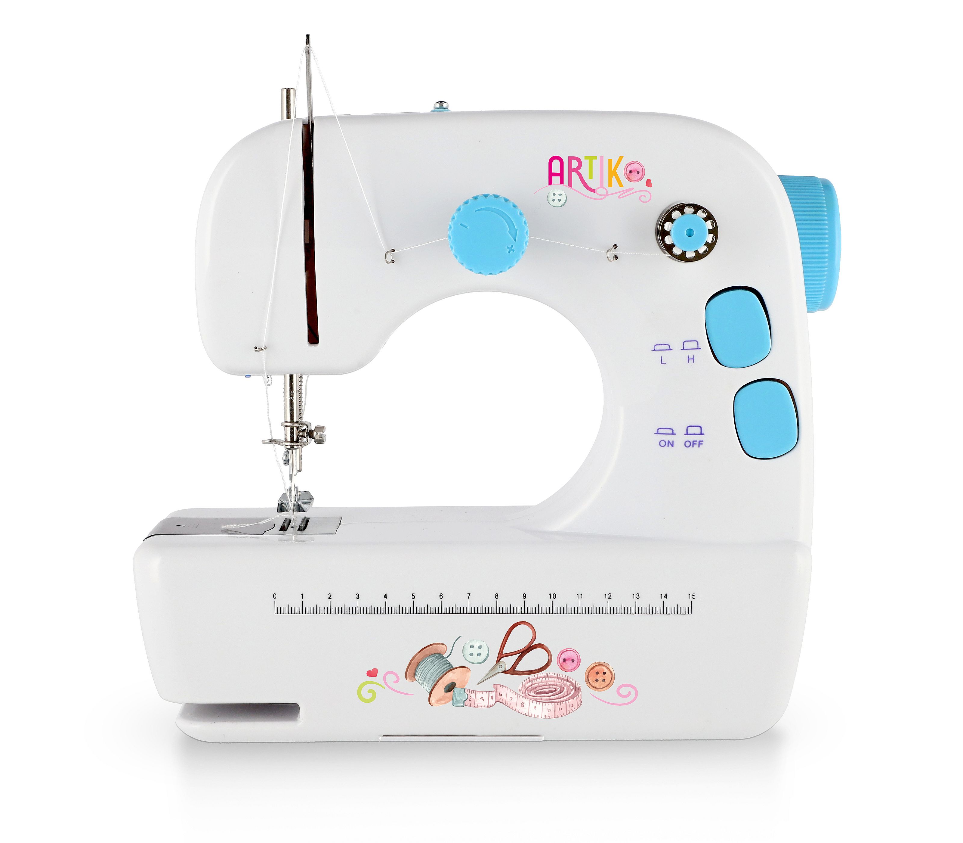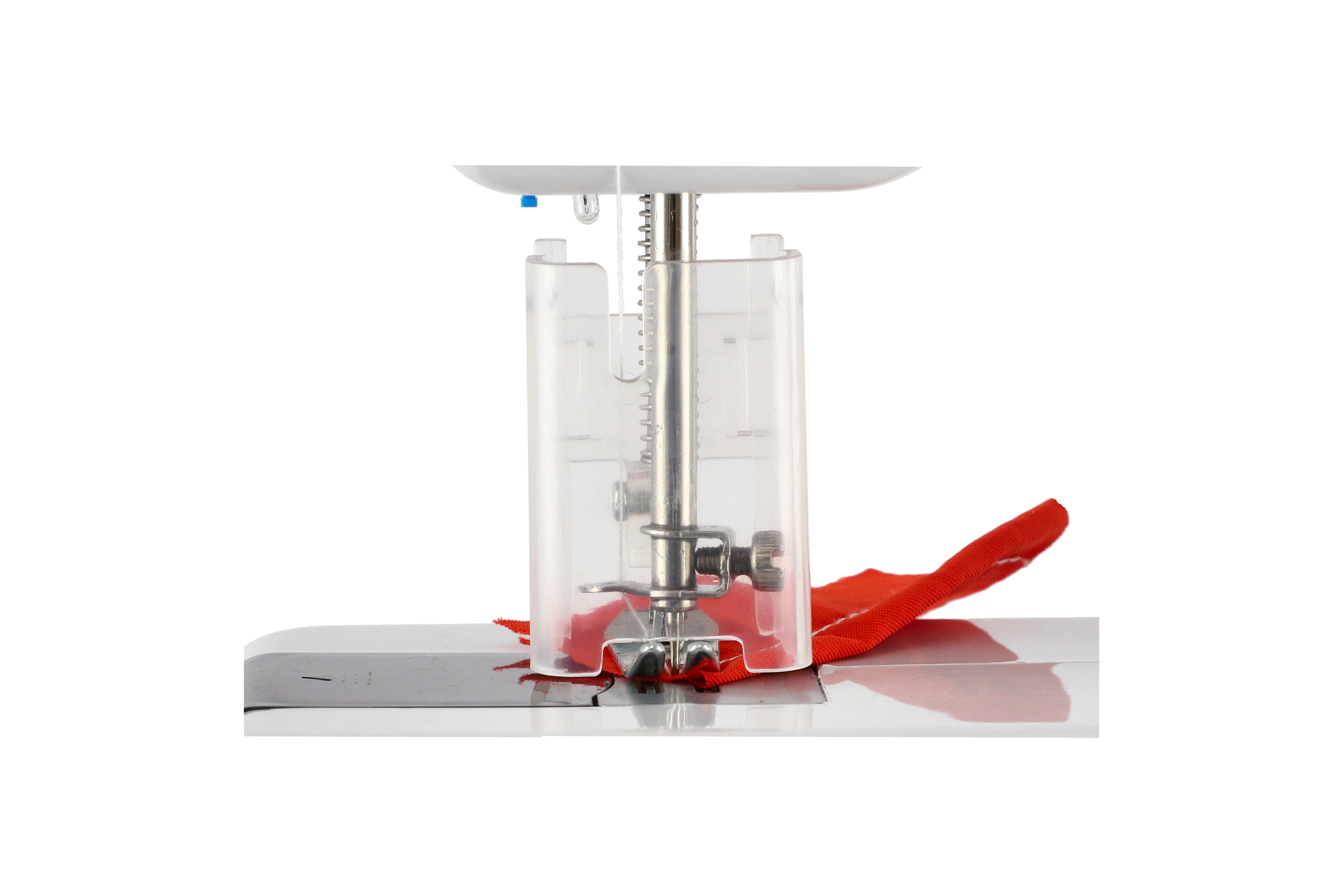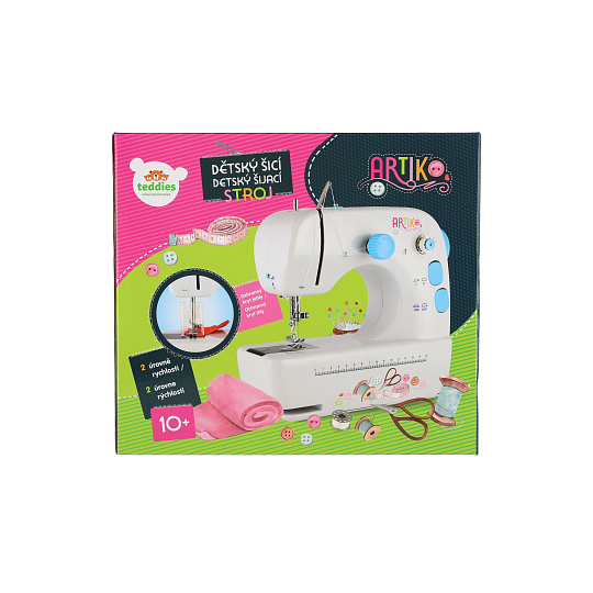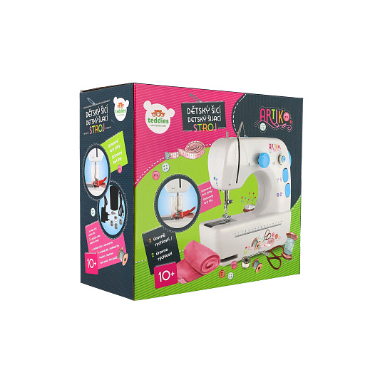 Šicí stroj umožňuje malým švadlenkám vstoupit do světa modních trendů a objevování této fantastické ruční práce. Tento model šicího stroje má kovové konstrukce, cívky, nitě, ale hlavně má plastový ochranný kryt jehly. Má 2 rychlosti šití, osvětlení a je určen na občasné šití, ale je plnohodnotný. Napájení stroje je buď pomocí tužkových baterií, nebo je součástí balení externí zdroj napájení. Doplňky součástí balení: 1x nožní pedál s kabelem 1x navlékač jehly 1x cívka s nití 3x cívka bez nitě 1x náhradní jehla 1x externí zdroj napájení Baterie 4x AAA nejsou součástí balení. Rozměry balení 30 x 26 x 13 cm Vhodné pro děti od 10 let