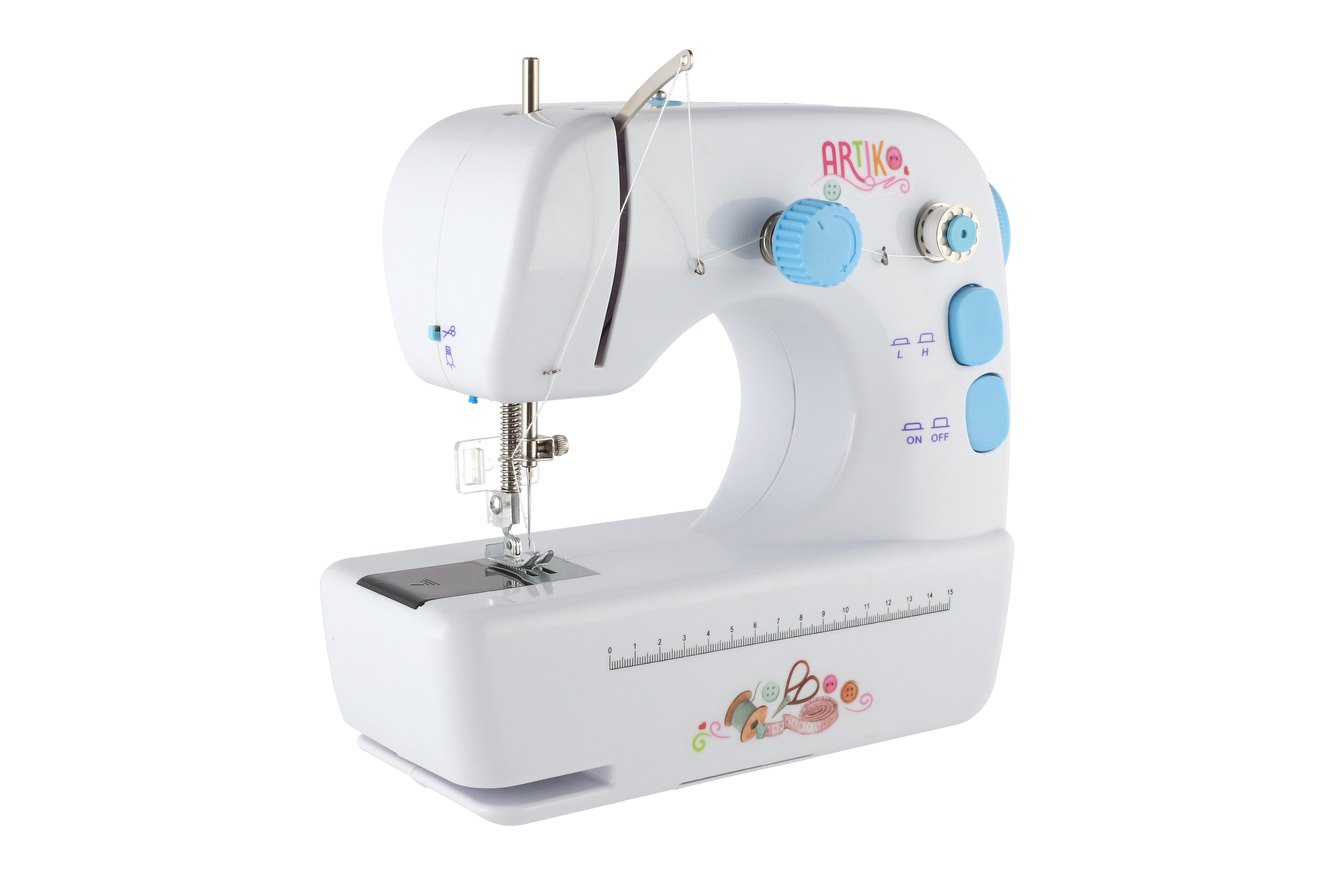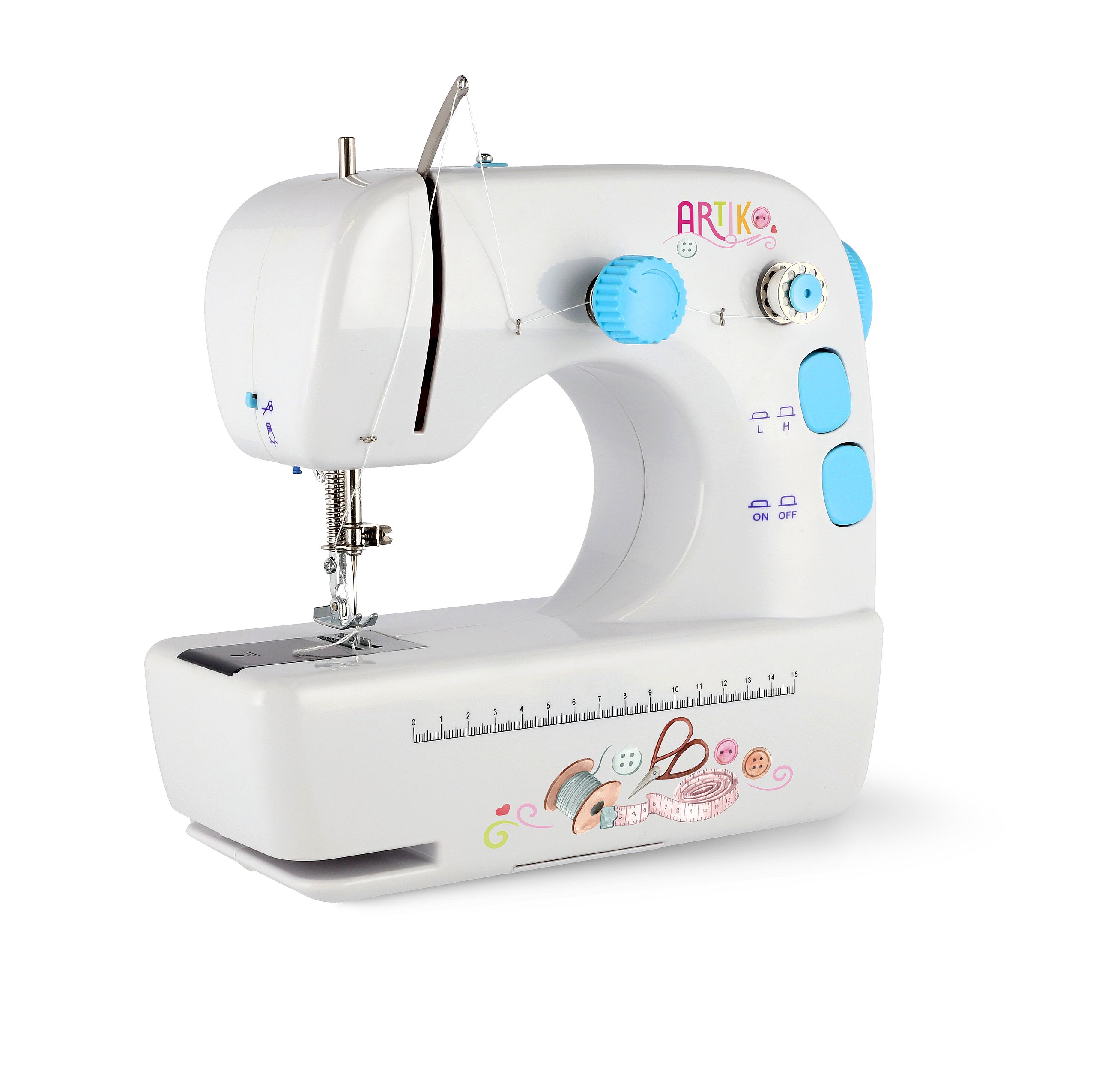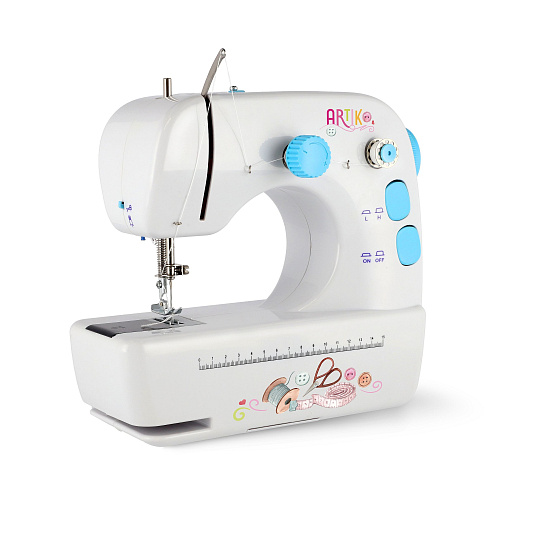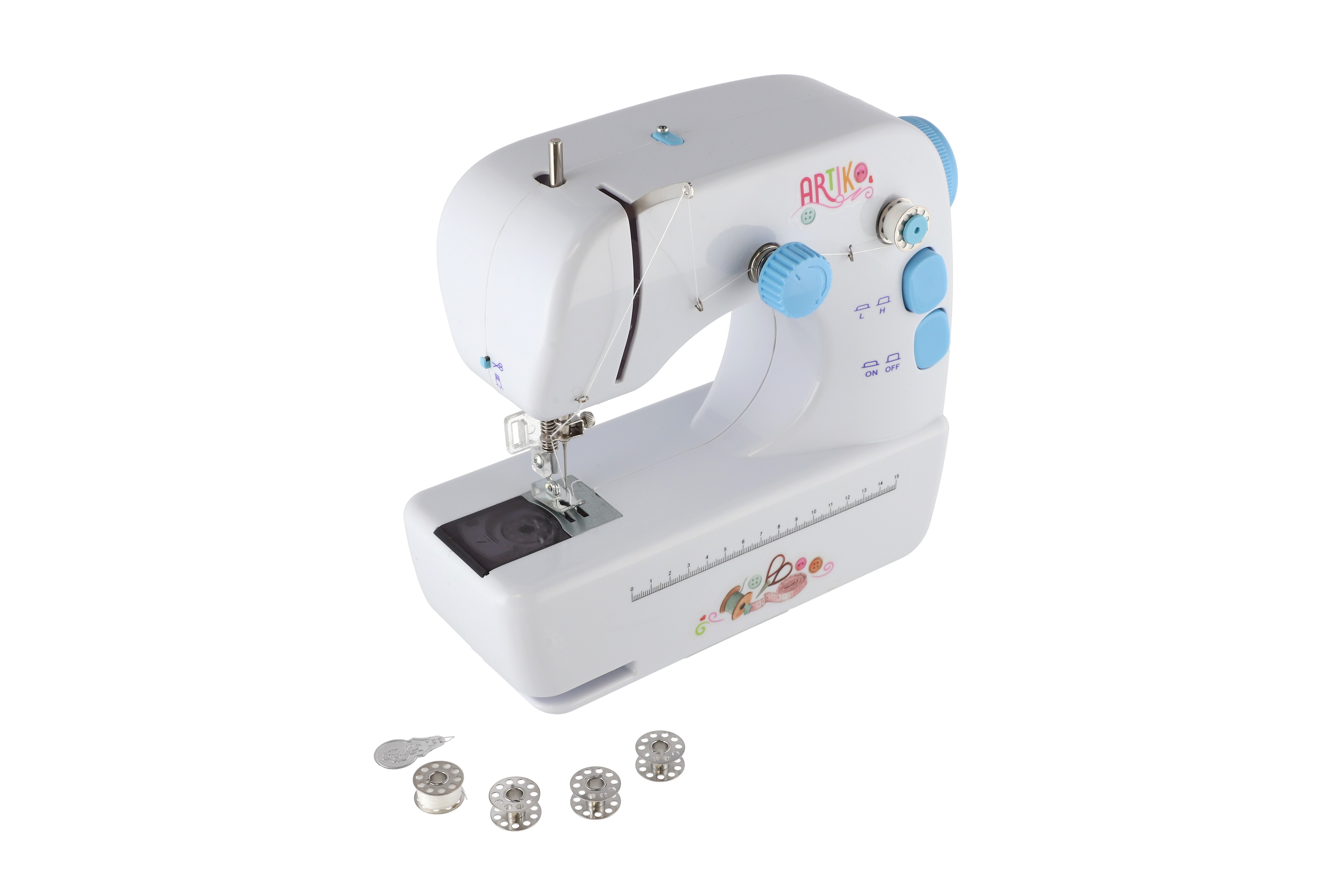 Šicí stroj umožňuje malým švadlenkám vstoupit do světa modních trendů a objevování této fantastické ruční práce. Tento model šicího stroje má kovové konstrukce, cívky, nitě, ale hlavně má plastový ochranný kryt jehly. Má 2 rychlosti šití, osvětlení a je určen na občasné šití, ale je plnohodnotný. Napájení stroje je buď pomocí tužkových baterií, nebo je součástí balení externí zdroj napájení. Doplňky součástí balení: 1x nožní pedál s kabelem 1x navlékač jehly 1x cívka s nití 3x cívka bez nitě 1x náhradní jehla 1x externí zdroj napájení Baterie 4x AAA nejsou součástí balení. Rozměry balení 30 x 26 x 13 cm Vhodné pro děti od 10 let
