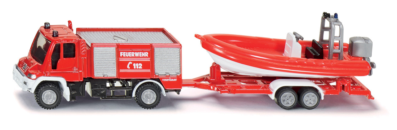 SIKU 1636 Blister - požární vozidlo Unimog s člunem