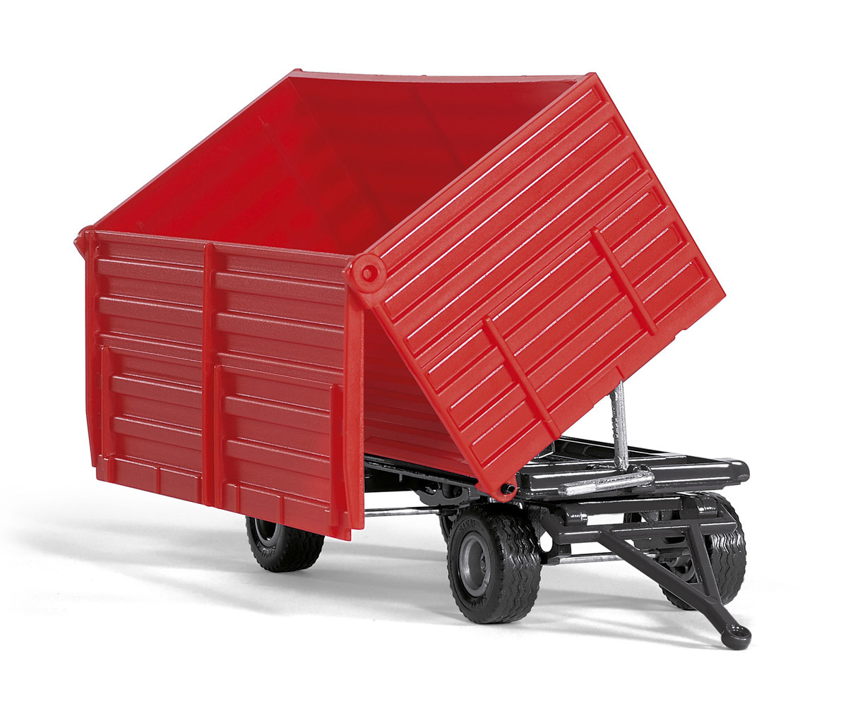 Přívěs za traktor v měřítku 1:32. Dvouosé středové otočné talířové přívěsy jsou nezbytnou součástí pracovního zařízení při farmářských pracích a sklizni. Přívěs je vybaven kovovým podvozkem a sklopným plastovým žlabem. Pravá bočnice lze otevřít. Funkce sklopení je umístěna na pravé straně. Spojka přívěsu umožňuje spojit dva z těchto přívěsů jako sběrný tým. Rozměr balení: 115 x 210 x 82 mm. Rozměr: 185 x 69 x 91 mm. Věk: 3+