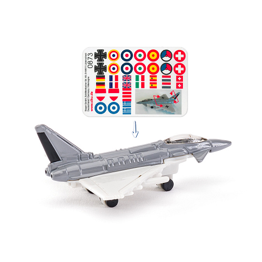 Věrná originální replika vojenské stíhačky. Tento model SIKU se vyznačuje realistickými detaily a je vyroben z tlakově litých kovových a plastových komponentů. Modely SIKU neobsahují žádné PVC a splňují mezinárodní bezpečnostní normy pro hračky. Model stíhačky je doplněn sadou samolepek, které umožnují vytvořit si osobitý design. Rozměry modelu: 2,7 x 4 x 7 cm. Rozměry balení: 7,8 x 9,7 x 4,1 cm. Baleno v blistru. Věk: 3+... více