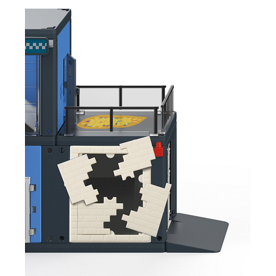 SIKU World – policejní stanice. Dvoupodlažní budovu lze sestavit dle ilustrovaného návodu. Z montážních části mohou být jednotlivé budovy sestaveny ve tvaru L, U nebo jako vícepodlažní budovy. Nový systém stavebních prvků, modulární struktura a stabilita systému push-fit dává dětem prostor pro kreativitu a podporuje rozvoj motorické a kognitivní dovednosti dítěte. Dále posiluje sebevědomí a schopnost vytvářet bez pomoci dospělých. Policejní stanice je kompatibilní s ostatními sadami v SIKUWORLD, ale je plně funkční i samostatně. Sada obsahuje více než 110 dílů. Samolepky na budovu, doplňky, světelná a zvuková signalizace. Stěna s díly puzzle systému se rozbije při úniku zadrženého.