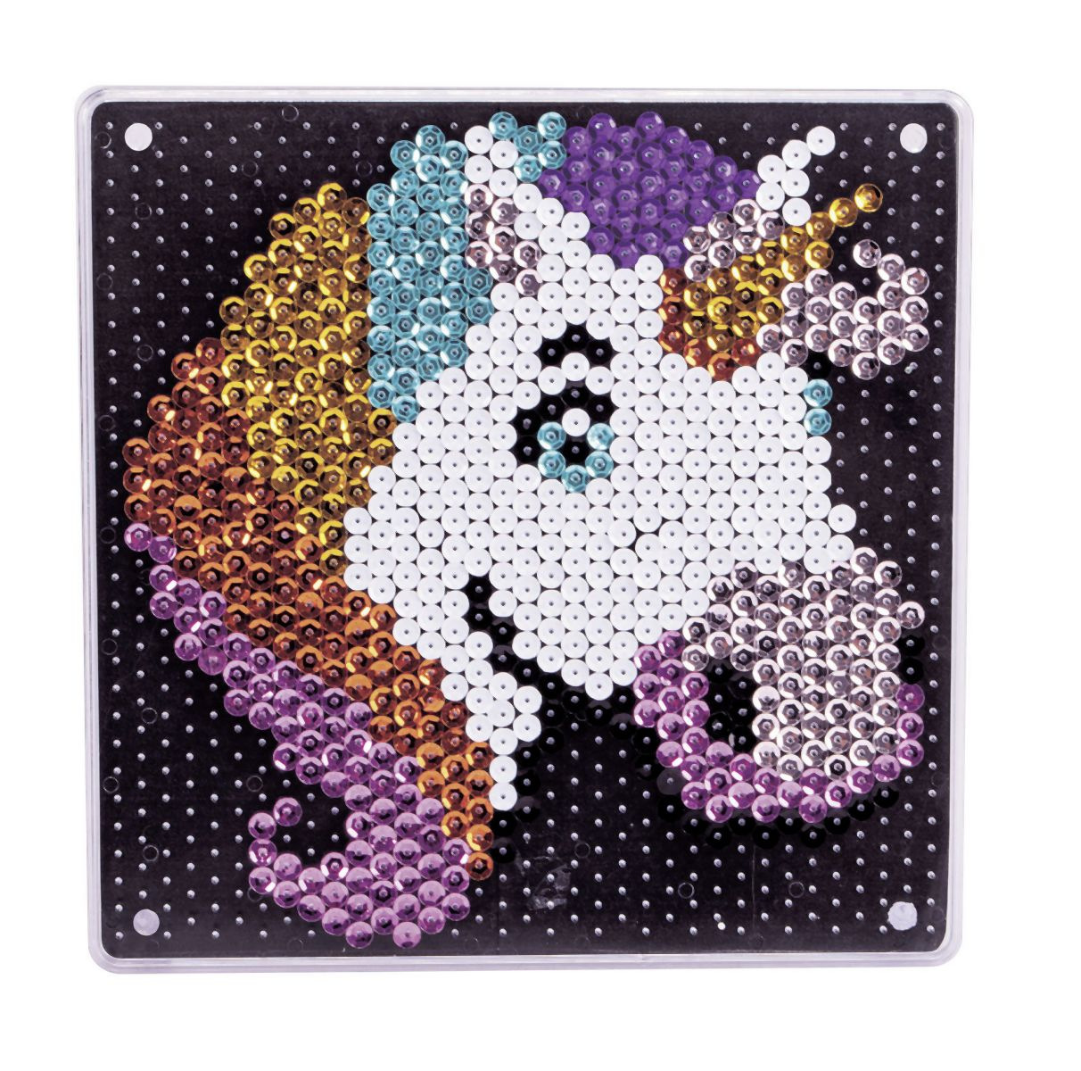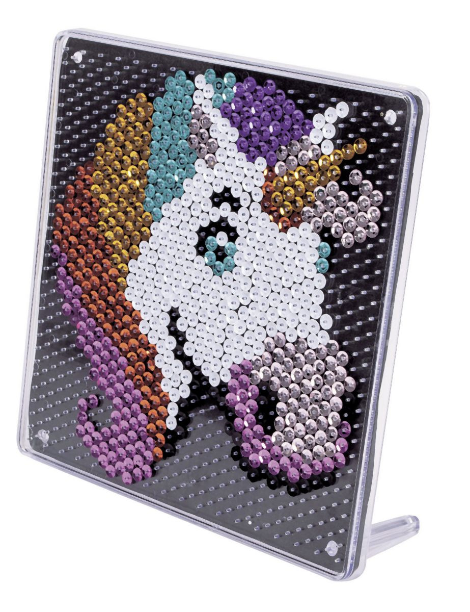 Sada k vytvoření obrázku jednorožce ze třpytivých flitrů na destičce o velikosti 18x18 cm. Součástí balení je 700 ks flitrů, magické pero a šablona kterou lze vložit na destičku. Destičku lze postavit na nožičky a vznikne tak krásná třpytivá dekorace.
