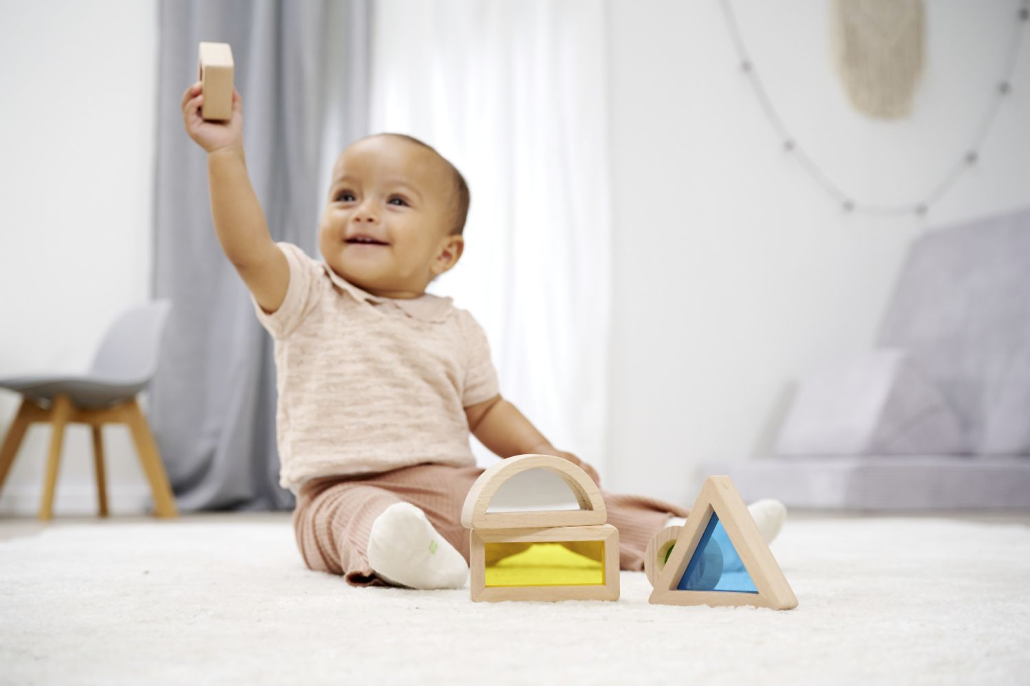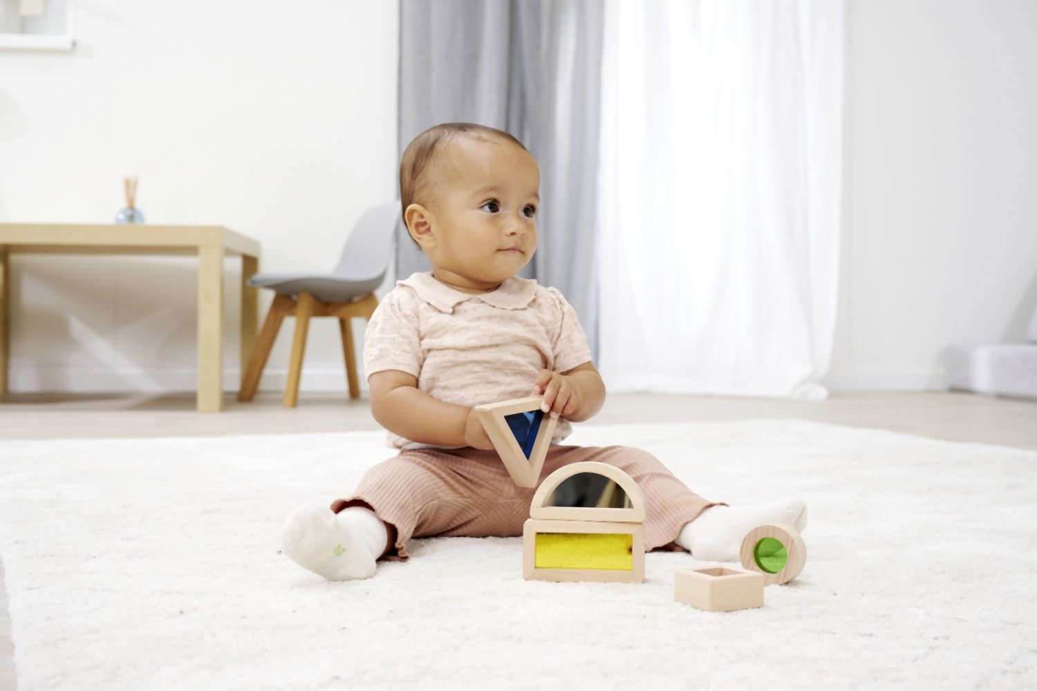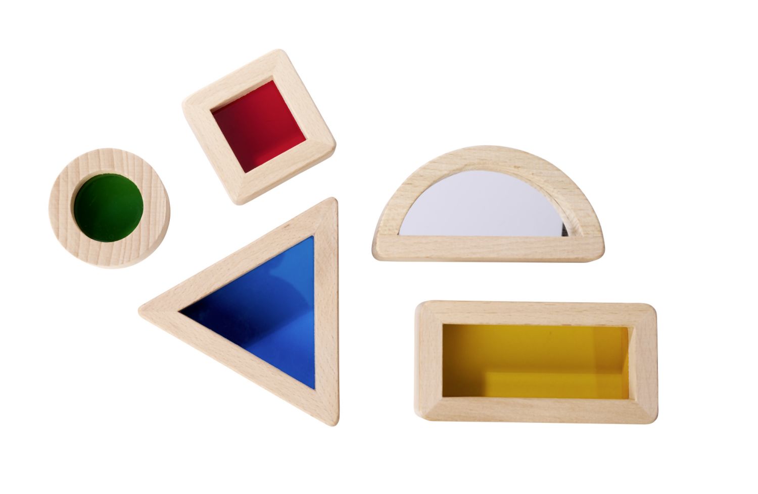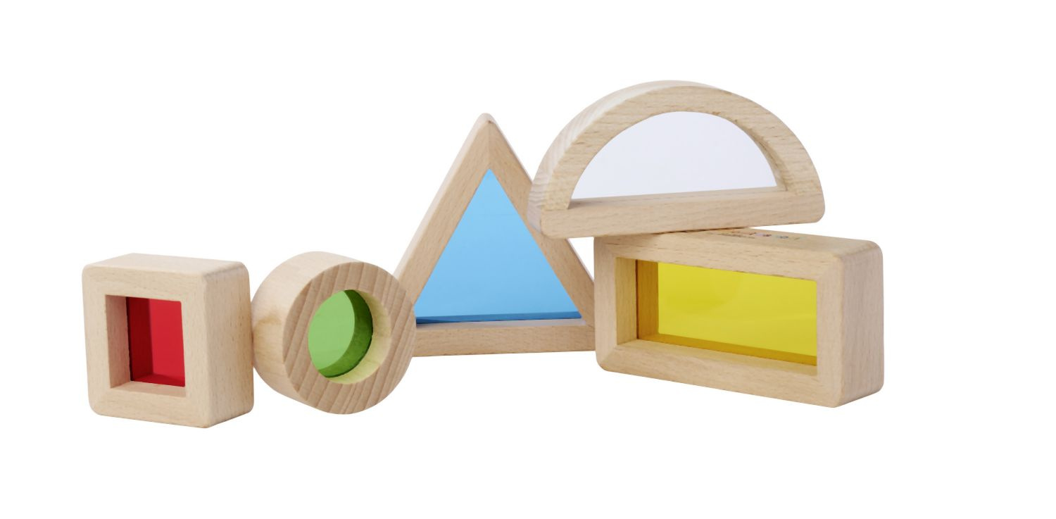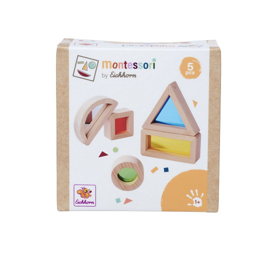 Montessori smyslové kostky v 5 různých tvarech jsou vzrušující záležitostí. Barevná akrylová skla přímo vybízejí k objevování. Děti mohou pozorovat svět skrz barevnou čočku. Zejména kostka se zrcadlovou fólií ohromí ty nejmenší. Pětidílná sada obsahuje trojúhelník, obdélník, čtverec, kruh a fólii se zrcadlem. Smyslové kostky Eichhorn jsou vyrobeny ze 100% bukového dřeva s certifikátem FSC a jsou vhodné pro děti od 1 roku.