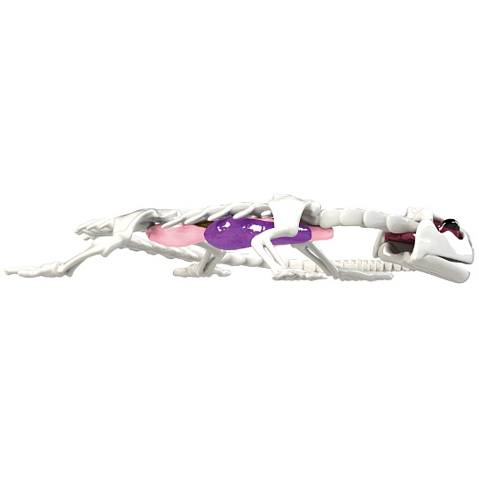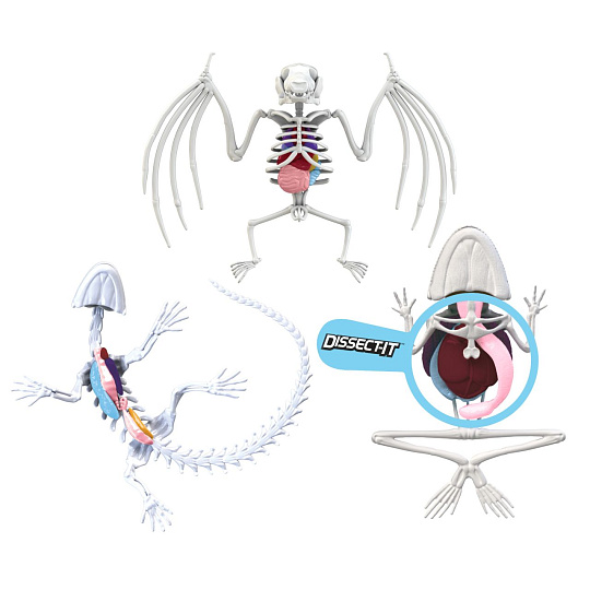 Malá laboratoř pro pitvu žáby, mloka či netopýra, jejichž kosti a orgány jsou pokryty slizem. Součástí je lupa a pinzeta a sáček s práškem pro vytvoření opětovného slizu: Po dokončení první pitvy vložte orgány a kostru zpět do blistru, promíchejte prášek s vodou, zalijte vzniklým slizem a nechte ztuhnout v chladu. Pitvu pak lze provést podruhé. Velikost 8 cm.