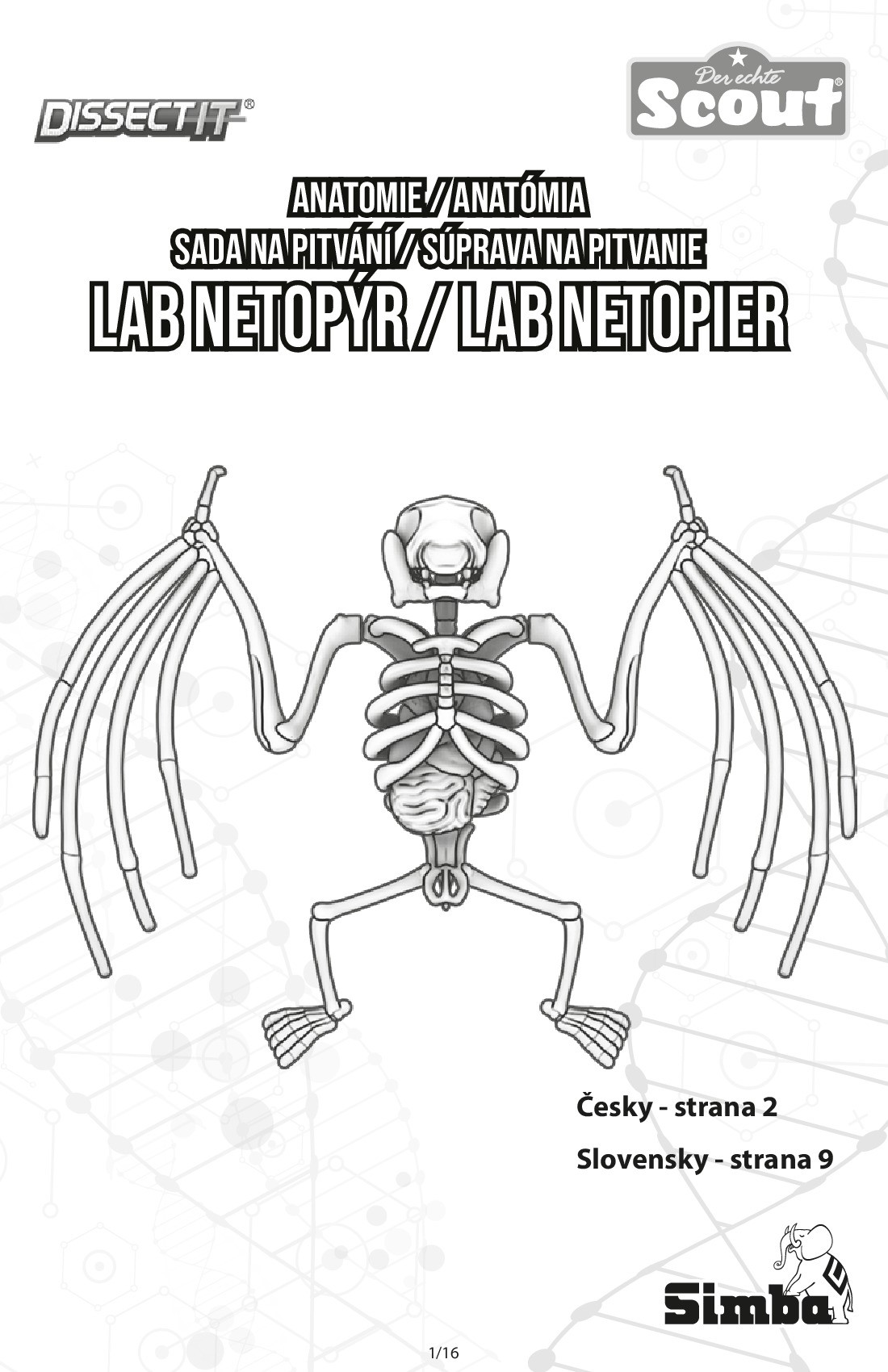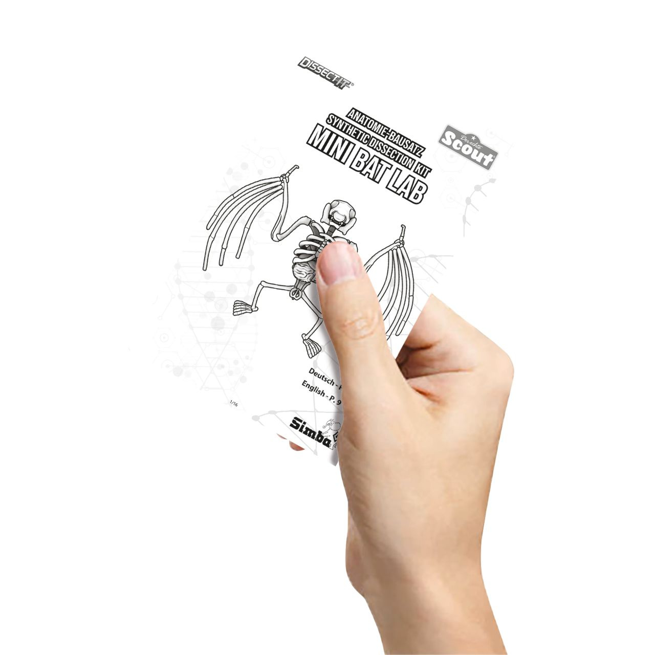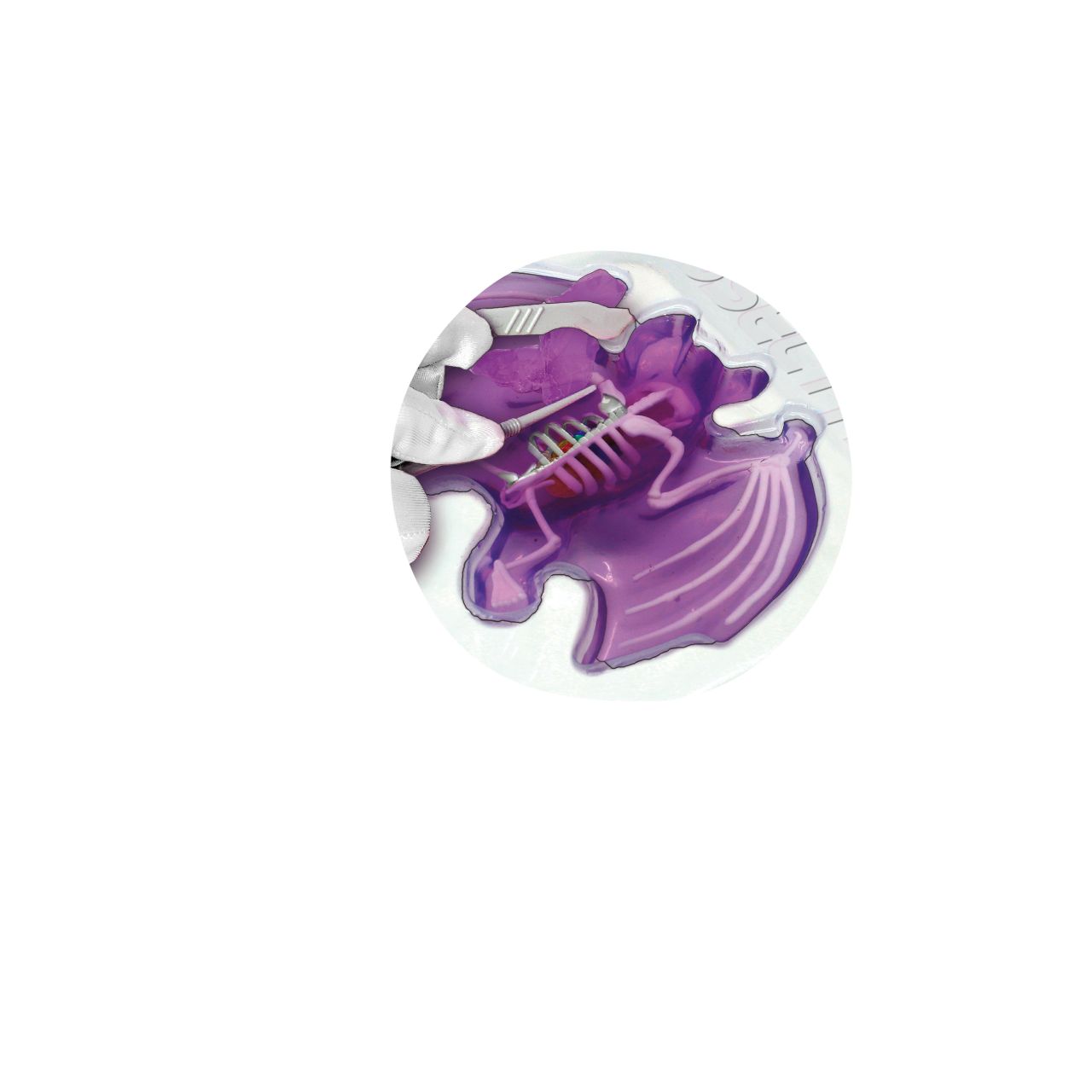 Sada s nástroji k pitvě netopýra, jehož kosti a orgány jsou pokryty fialovým slizem. Prvky lze vyjmout a prozkoumat jednotlivě. Součástí je sáček s práškem pro vytvoření opětovného slizu. Po dokončení první pitvy vložte orgány a kostru zpět do blistru, promíchejte prášek s vodou, zalijte vzniklým slizem a nechte ztuhnout v chladu. Netopýra pak lze pitvat podruhé. Velikost 15 cm.