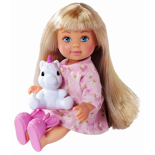 Panenka Evička jako princezna s kouzelným poníkem se třpytivou hřívou. Výška panenky 12 cm.