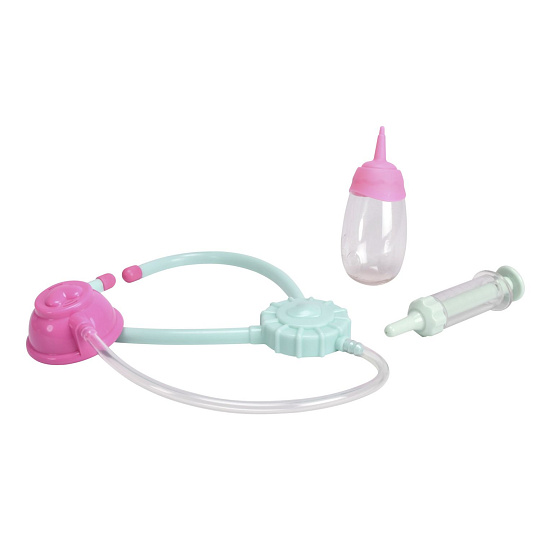 Panenka Laura s měkkým tělíčkem, několika funkcemi a s doktorským příslušenstvím. Výška panenky 30 cm.