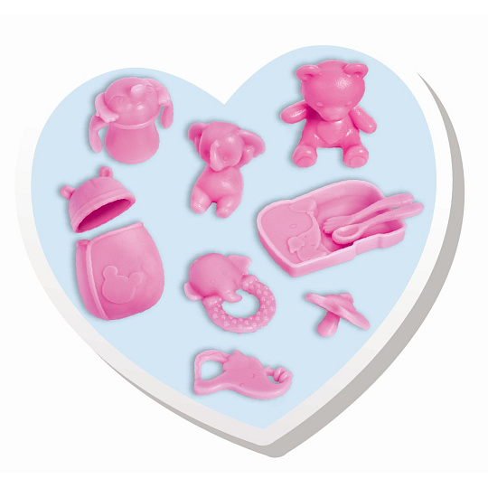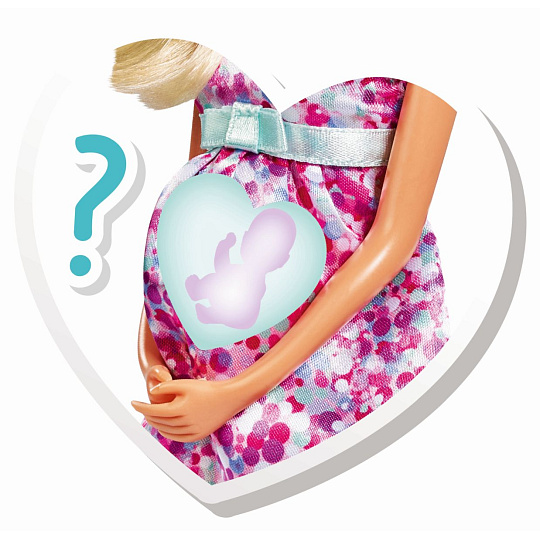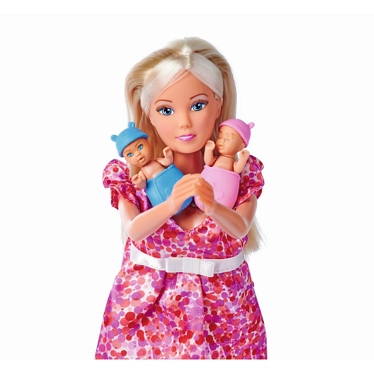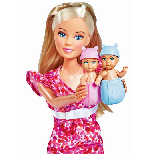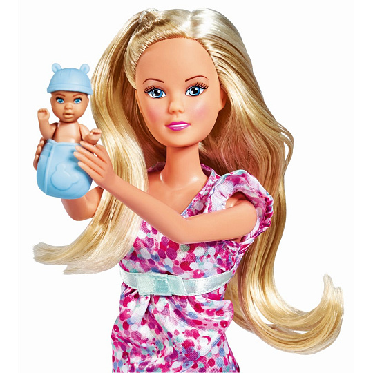 Steffi jako nastávající maminka s miminkem v bříšku. Když stiskneme tlačítko ve tvaru srdce na jejím náhrdelníku, uslyšíme tlukot srdce miminka. Když se dítě narodí a vykoukne z bříška, dá o sobě vědět křikem. Když pak znovu stiskneme srdíčko na náhrdelníku, postupně uslyšíme další zvuky - pláč, usínání při ukolébavce a smích. Sada obsahu