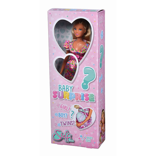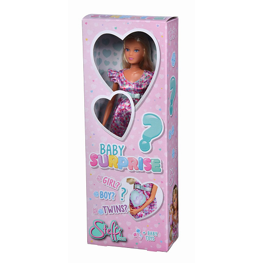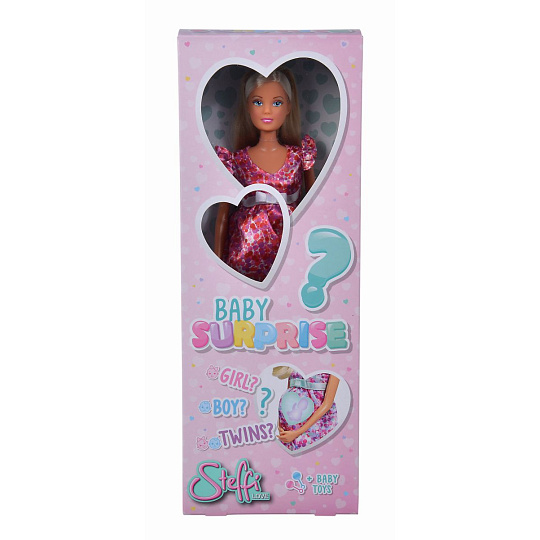 Těhotná panenka Steffi s dítětem jako překvapení a s více než 11 doplňky. Bude to chlapeček, holčička nebo dvojčátka? Velikost panenky 29 cm. 3 druhy.