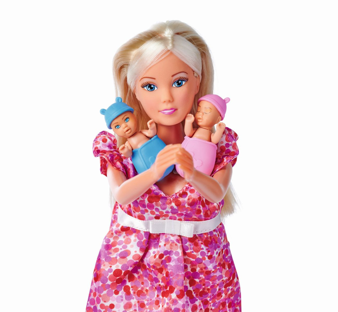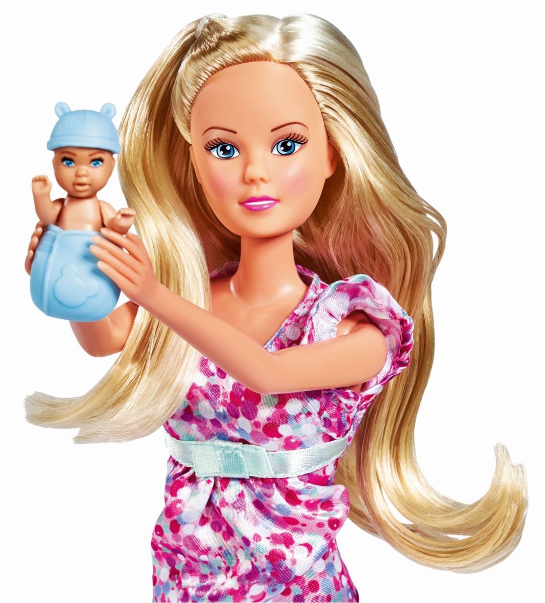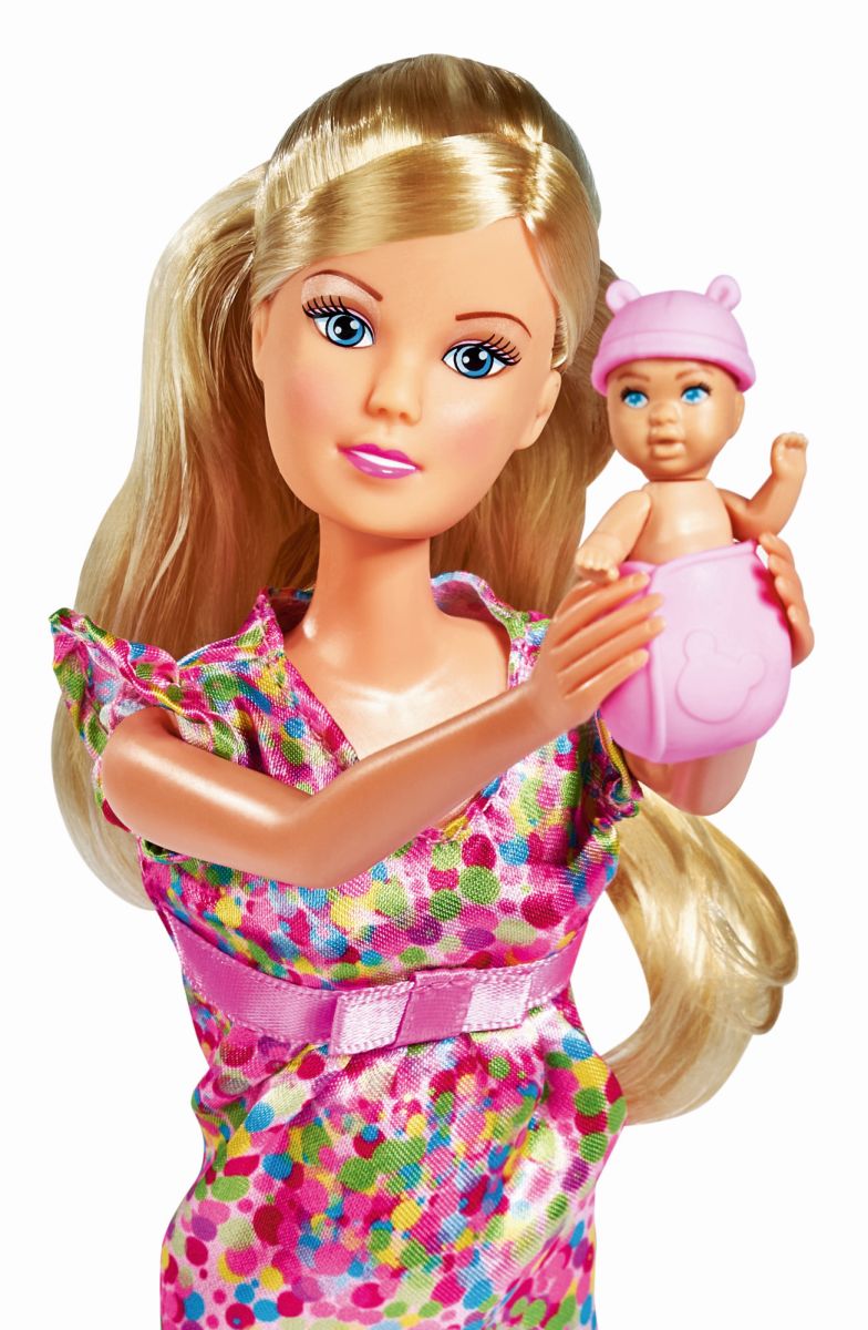 Steffi jako nastávající maminka s miminkem v bříšku. Když stiskneme tlačítko ve tvaru srdce na jejím náhrdelníku, uslyšíme tlukot srdce miminka. Když se dítě narodí a vykoukne z bříška, dá o sobě vědět křikem. Když pak znovu stiskneme srdíčko na náhrdelníku, postupně uslyšíme další zvuky - pláč, usínání při ukolébavce a smích. Sada obsahu