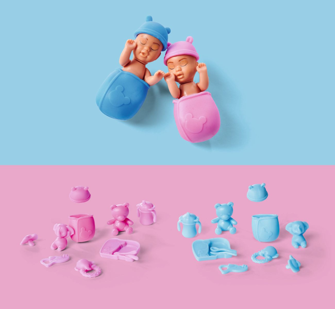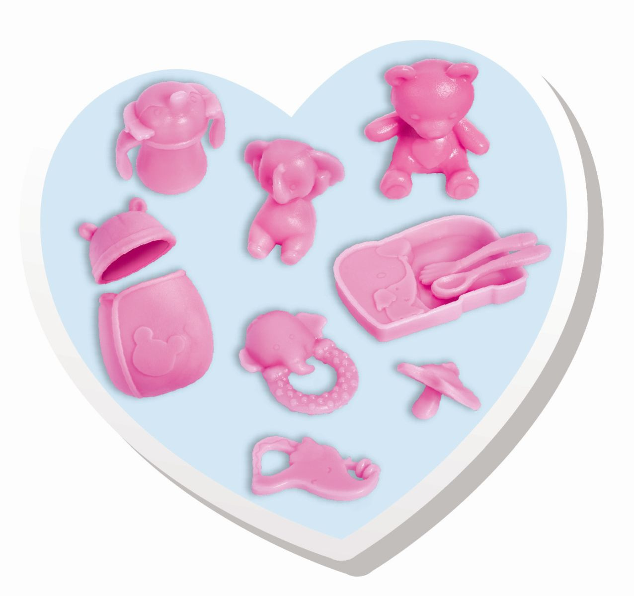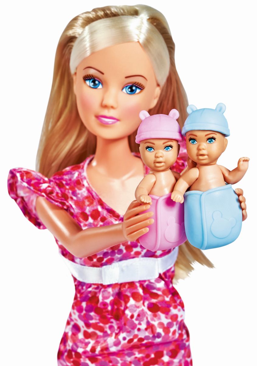 Steffi jako nastávající maminka s miminkem v bříšku. Když stiskneme tlačítko ve tvaru srdce na jejím náhrdelníku, uslyšíme tlukot srdce miminka. Když se dítě narodí a vykoukne z bříška, dá o sobě vědět křikem. Když pak znovu stiskneme srdíčko na náhrdelníku, postupně uslyšíme další zvuky - pláč, usínání při ukolébavce a smích. Sada obsahu