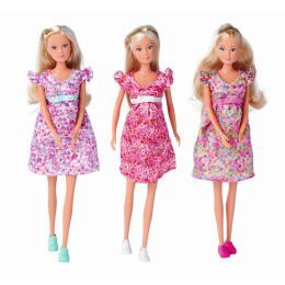 Panenka Steffi v šatech s květinovými motivy 2 druhy. Velikost panenky 29 cm.