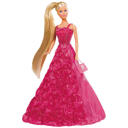 Panenka Steffi v nádherných večerních šatech s velkou mašlí. Výška panenky 29 cm.