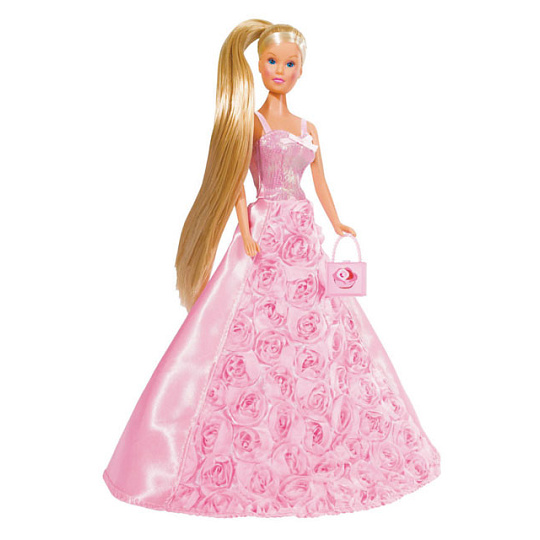 Panenka Steffi v nádherných šatičkách s růžemi. Součástí kabelka i hřeben na vlasy. Výška