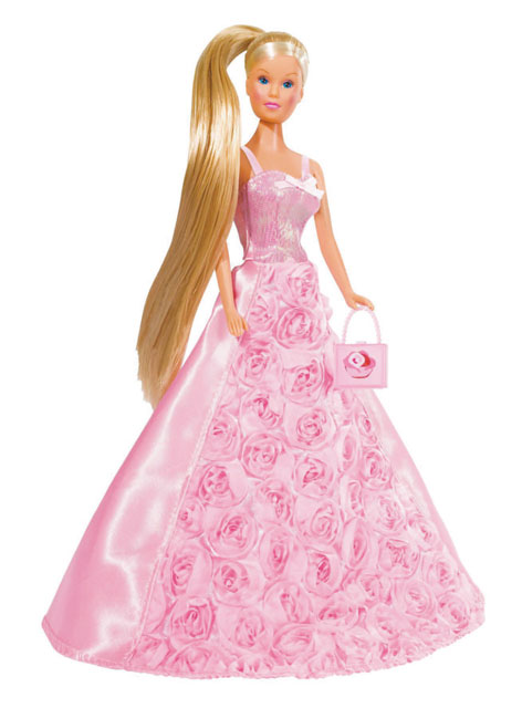 Panenka Steffi v nádherných šatičkách s růžemi. Součástí kabelka i hřeben na vlasy. Výška
