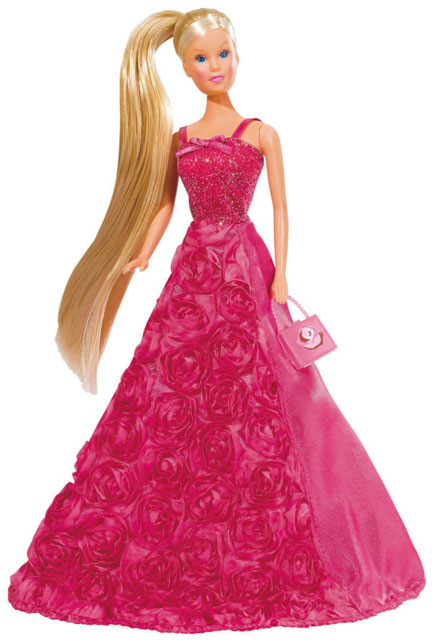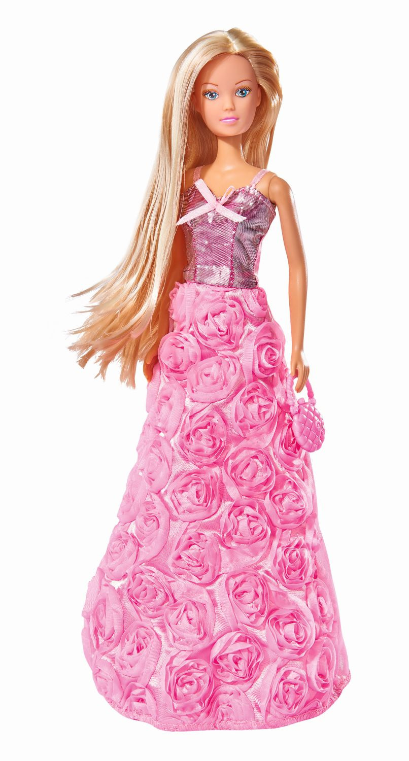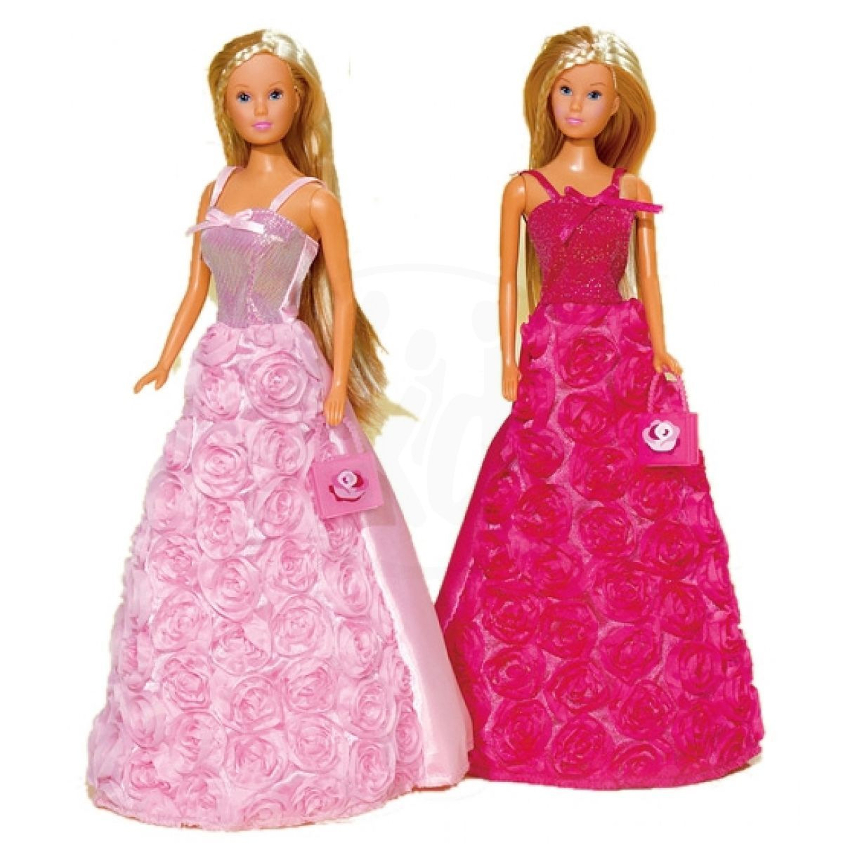 Panenka Steffi v nádherných večerních šatech s velkou mašlí. Výška panenky 29 cm.