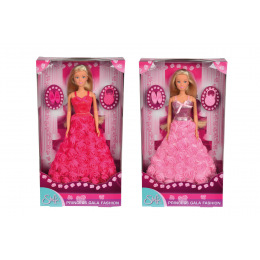 Panenka Steffi v efektních třpytivých šatech s náušnicemi a sponou, 2 druhy. Velikost panenky 29 cm.
