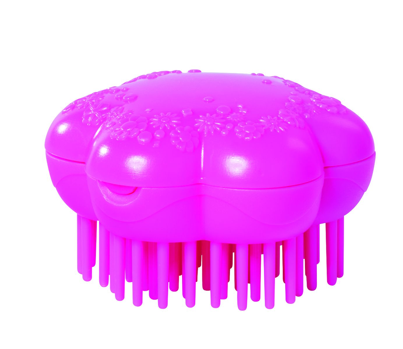 Panenka Steffi v kytičkovém dvoudílném outfitu, s háčkem na navlékání korálku na pramen vlasů, barevnými korálky, gumou na fixaci a hřebenem s úložným prostorem. Výška panenky 29 cm.