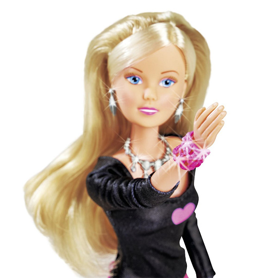 Panenka Steffi se super třpytivými šaty a modními doplňky. Velikost panenky 29 cm.