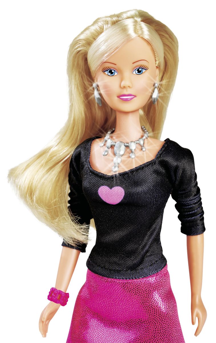 Panenka Steffi se super třpytivými šaty a modními doplňky. Velikost panenky 29 cm.