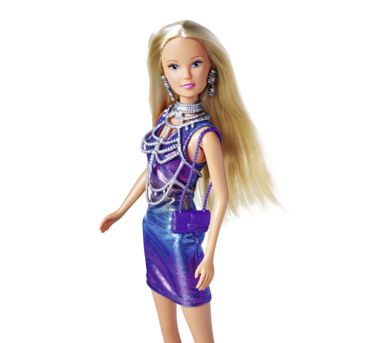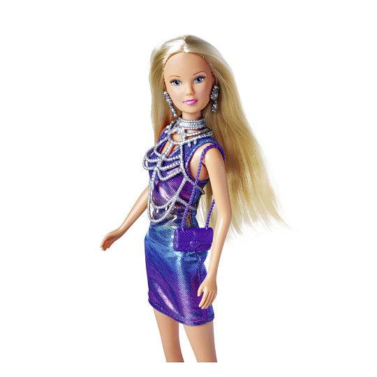 Panenka Steffi se super třpytivými šaty a modními doplňky. Velikost panenky 29 cm.