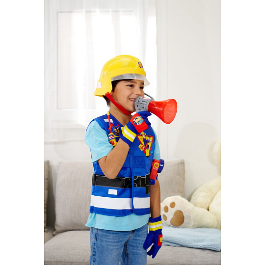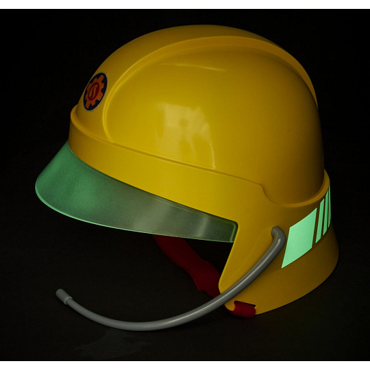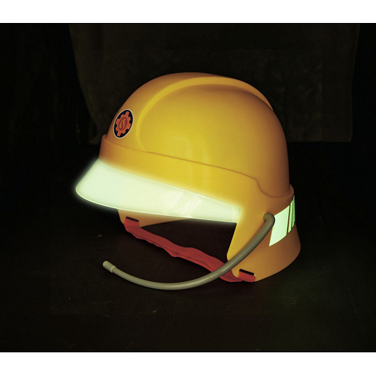 Hasičská helma pro malé hasiče v licenci Požárníka Sama s mikrofonem. Helma je v zadní části polepená ve tmě svítícími samolepkami, uvnitř jsou pěnové podložky. 22 x 19,5 x 18,5 cm