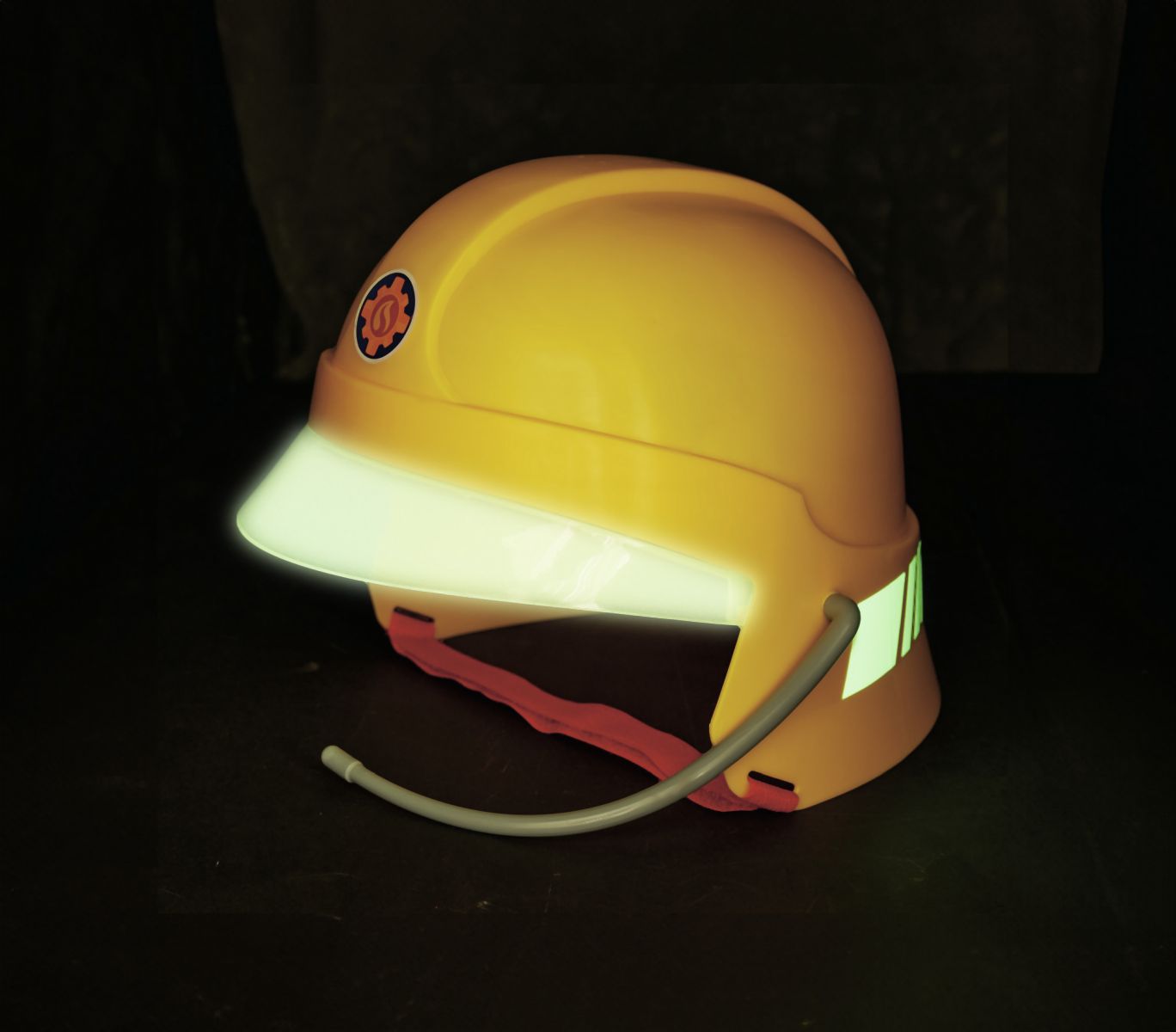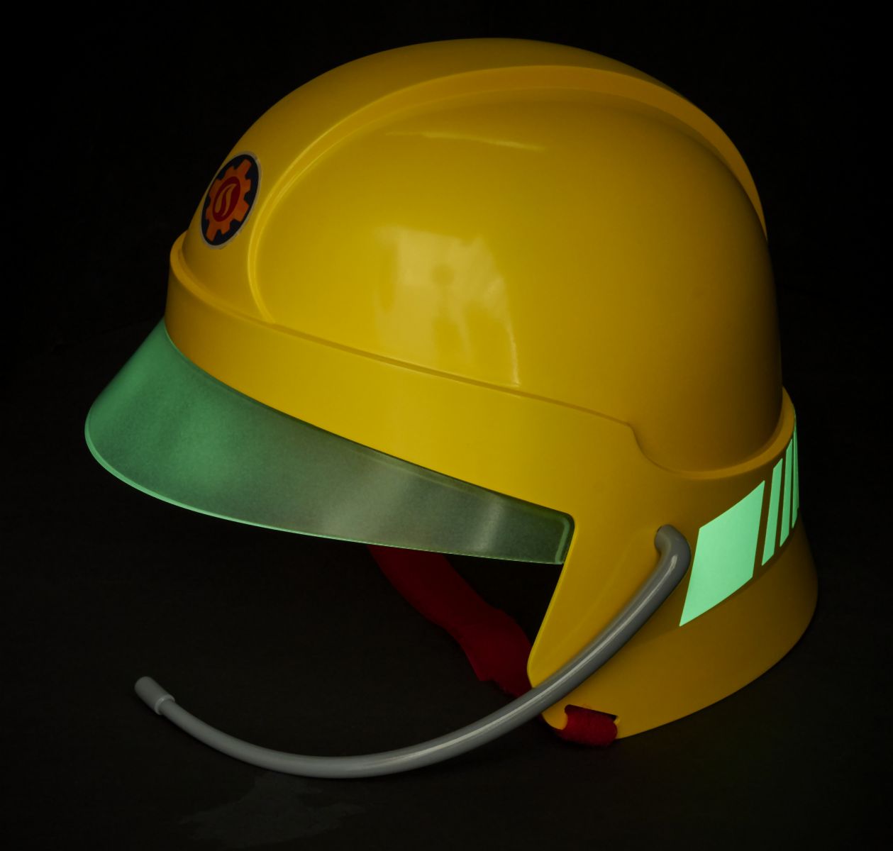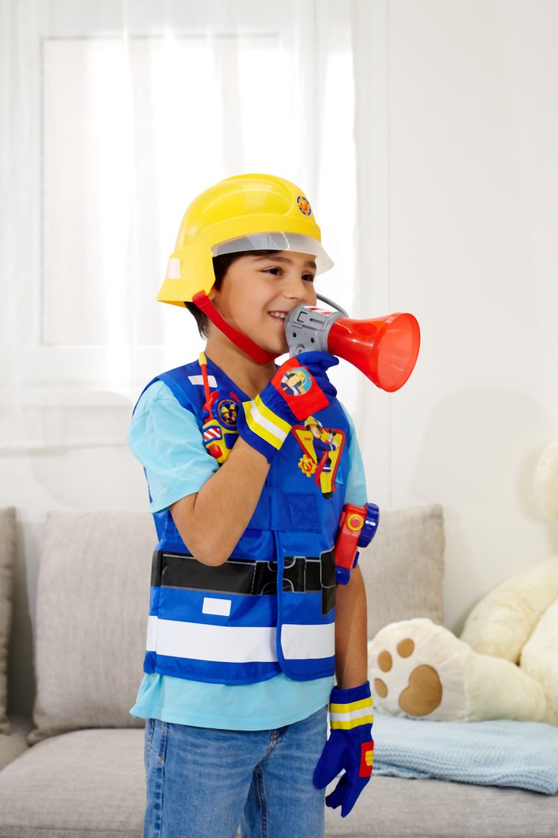 Hasičská helma pro malé hasiče v licenci Požárníka Sama s mikrofonem. Helma je v zadní části polepená ve tmě svítícími samolepkami, uvnitř jsou pěnové podložky. 22 x 19,5 x 18,5 cm