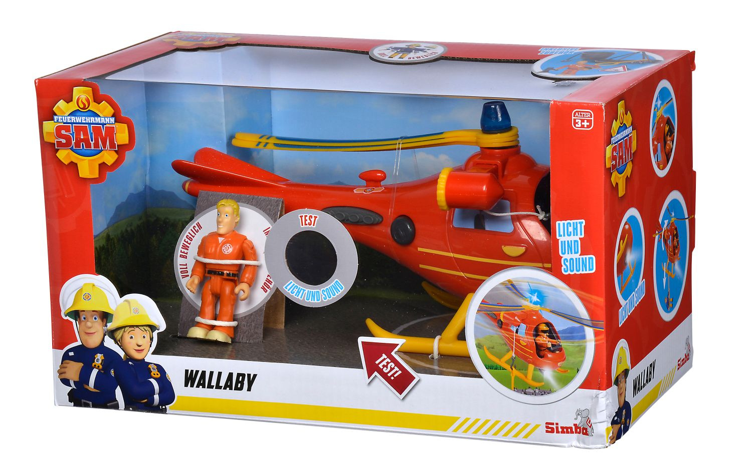 Vrtulník s figurkou Toma z oblíbeného seriálu Požárník Sam. Modrý světelný efekt, světlomet a zvukový efekt. Otočná vrtule, mechanický naviják a příslušenství. Délka 15 cm