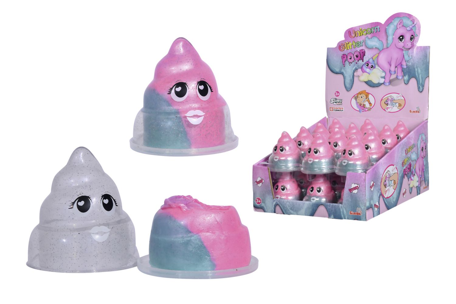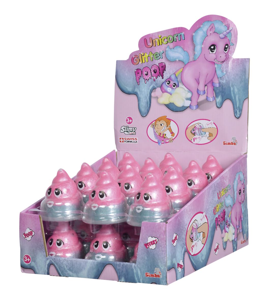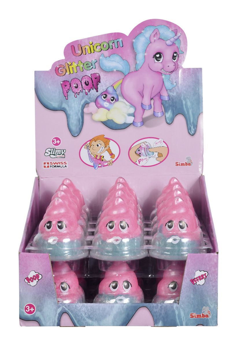 Slimy Unicorn prdící kelímek se třpytivým růžovo tyrkysovým slizem, 80g. Displej 24 ks.