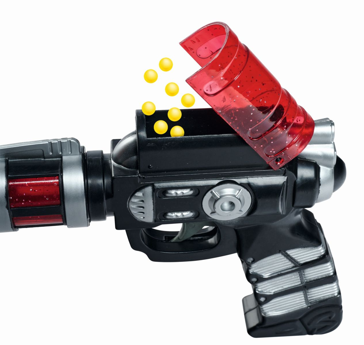 Sada obsahuje vesmírnou pistoli a 100 nábojů/kuliček ke střelbě, které lze později dokoupit. Po zmáčknutí spouště vystřelí pistole malé žluté kuličky, které lze shora snadno nabít. Vesmírná zbraň zaujme svým futuristickým designem ve dvou barevných variantách: červené nebo zelené. Kuličky jsou velmi lehké a díky nízké síle nehrozí nebezpečí poranění při používání. Délka pistole 18 cm.
